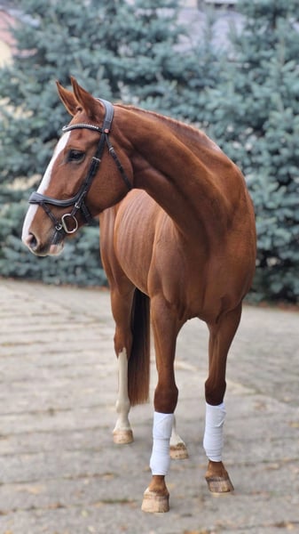 for more photos follow us on Instagram; reitsport_team_david I wish for my mare a wonderful new home. She moves in all three gaits, and her trot is particularly remarkable. She is familiar with both open stable and box housing. She is also compatible with other horses. Born May 2019 Height 166 cm. She has dressage and jumping ability. Henrietta is barefoot and does not require shoes, making her cost-effective. Currently, she is being regularly trained by our trainer. Henrietta enjoys regular visits from the farrier and dentist. She is farrier and loading friendly, and she loads onto the trailer without any issues, with regular training. She is a great leisure horse and is perfect for trail riding. An AKU (pre-purchase examination) is available. She has a special pedigree; Hickstead White X Periqueux/Wonderland. Videos available upon personal request after an initial phone call. All further details personally, price negotiations will only be conducted on-site. According to the new EU law, the following sentence applies; The sale is made excluding any warranty for material defects. "I exclude any liability for material defects, the information is provided without guarantee. Liability for damages due to injury to health, body or life and grossly negligent and/or intentional breaches of my duties as a seller remains unrestricted or unaffected." Due to the new EU law, the following conditions apply: This sale is a purchase contract from private to private according to § 13 BGB. The sale is made excluding any warranty, guarantee, and return. According to § 447 BGB, the risk passes to the buyer upon delivery to the shipping or the buyer. According to the new EU law, this addition must be included in every online sale; otherwise, the seller is liable for a whole year for the sold goods.