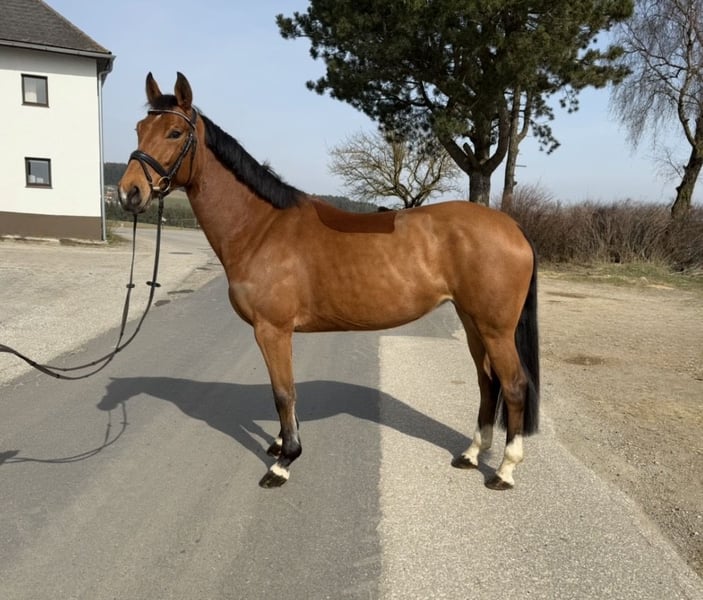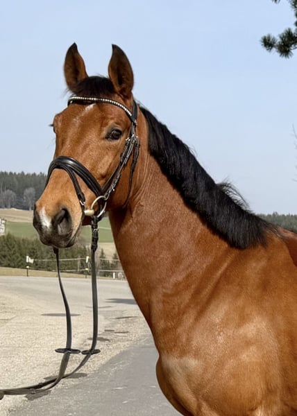 Adele is a approximately 16.0 hh German mare with excellent bloodlines, sired by Asterix de Couleur out of Lord Petzi. This horse has already been successfully presented at competitions and impresses with a very good jumping technique. Adele is the perfect horse for riders who appreciate a motivated and eager partner. In handling, the mare is very well-behaved and easy to manage. With this horse, there are no obstacles to starting a successful competition season! For more information and videos, please contact me via WhatsApp or by phone at: +43 660 3632373 Location: Pelmberg 15, Upper Austria Viewing and trial riding are available by appointment! Transportation of the horse can be arranged gladly.