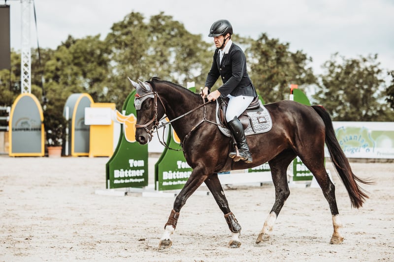 Lilly's Fiona is a beautiful and talented 7-year-old bay mare. She has been presented and placed in show jumping competitions up to 115 cm. In a competition atmosphere, she remains composed. Due to her challenging character, she is only suitable for professionals or experienced riders in handling and riding. In jumping, Fiona demonstrates talent, ability, and attitude. With her confident and fearless character, she is also a reliable partner out on the trails. Accordingly, Fiona is suitable for leisure activities with an experienced, self-assured rider. She is barefoot and healthy. Current X-rays are not available but can be taken if interested. Björn Löffler