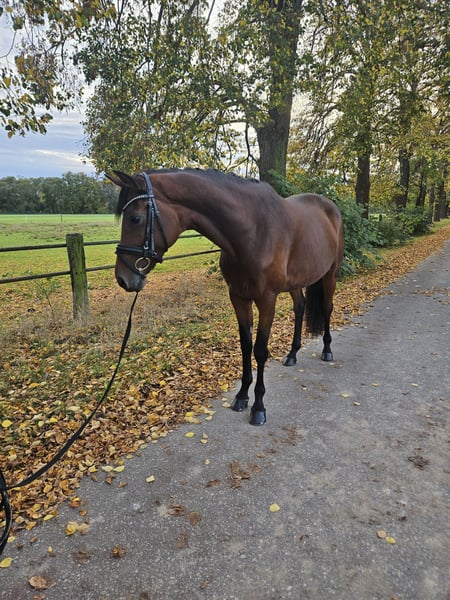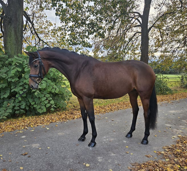 MALOU, a stunning mare sired by Morricone out of De Chirico, always captures everyone's attention with her presence. She is equipped with three very good basic gaits and exceptional rideability, exhibiting a subtle connection, excellent seat, and a calm demeanor, combined with the right amount of energy—not too much, not too little. Her previous competition outings were handled confidently, and she has repeatedly placed highly in dressage horse classes at the M level, earning high scores. Promising potential for piaffe and passage further highlights her talent and prospects for a successful career in top-level dressage. As she is very affectionate and people-oriented, we are looking for a wonderful home where Malou will be loved and appreciated.