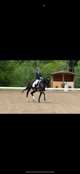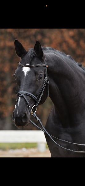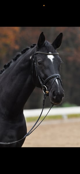 This 7-year-old black mare is an exceptionally expressive ballerina, impressing with her lively and rhythmic gaits. A true horse for the big arena. Wictoria Secret is already competing successfully in dressage at the L* level.