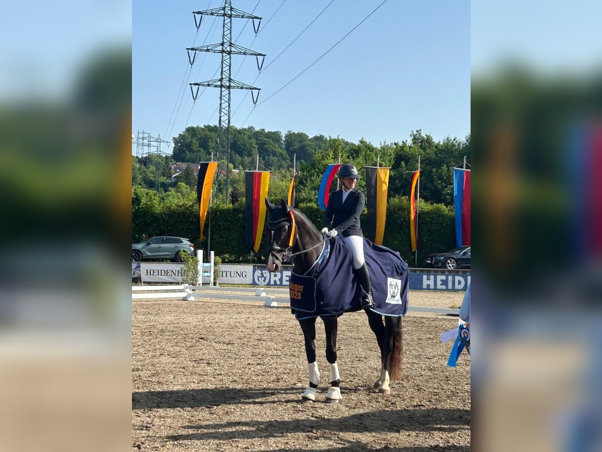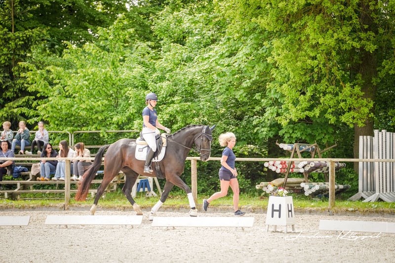 beispielhaft in Kondition und Konstitution, wirkungsvolle Erscheinung unter dem Sattel, vorbildliche natürliche Rittigkeit. Entwickelt viel Schwung. Gewann fünf A-Dressuren und ist in L-Dressur hochplatziert. Hatte als 10tägiges Fohlen einen Fesselbeinbruch, der erfolgreich operiert wurde. Sie wird deshalb deutlich unter Wert angeboten.