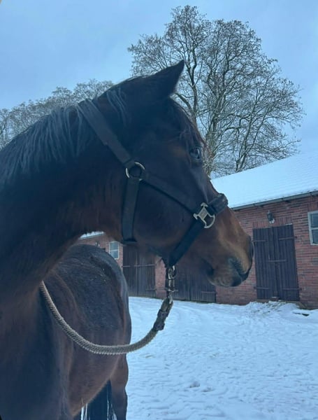 Joy ist gelände- und verkehrssicher, unerschrocken, neugierig, sehr personenbezogen und lernt gerne. Der ideale "Freund" für's Leben. Sie war bis 5j. in der Herde in freier Natur. Daher ist sie auch sozial verträglich und am liebsten draußen (möglichst rund um die Uhr). Ich trenne mich nur schweren Herzens aus Zeitmangel, deshalb ist ihre Ausbildung in Springen und Dressur auch ziemlich auf der Strecke geblieben. Sie wird im Mmt. von einem 15j. Mädchen freizeitmäßig geritten. Sie verfügt über Springpotential, deshalb sehe ich sie am ehesten in der VS. Die Großmutter war S-platziert, die Mutter ist M-platziert, wäre auch S gegangen, aber nicht mit mir. Über den Vater Acordelli kann man sich bei "Gestüt Birkhof" informieren. Nur in erfahrene, liebevolle Hände abzugeben. Platz vor Preis, da bin ich sehr flexibel.