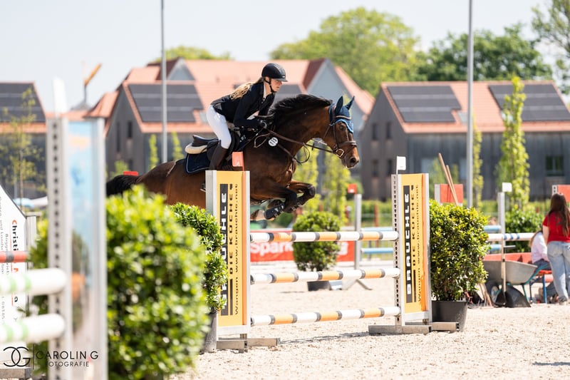 For sale is a very elegant, untouched, and modern-looking mare. She has previously been competed up to class L by an amateur rider. In show jumping, she demonstrates a lot of overview, talent, and willingness to lead. She is suitable as a beginner or amateur horse. She is familiar with cross-country and goes very calmly alone to competitions. She was started late under saddle, as she had a foal at four years old. Afterwards, she was gradually introduced to sport, but due to professional commitments (on my part), she has had several breaks. I am offering her because I no longer have enough time to care for her properly. Her pedigree and lineage also make her interesting for breeding purposes. She will only be sold to a good home with pasture turnout. No dealer inquiries, please!
