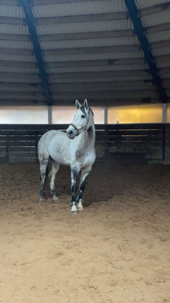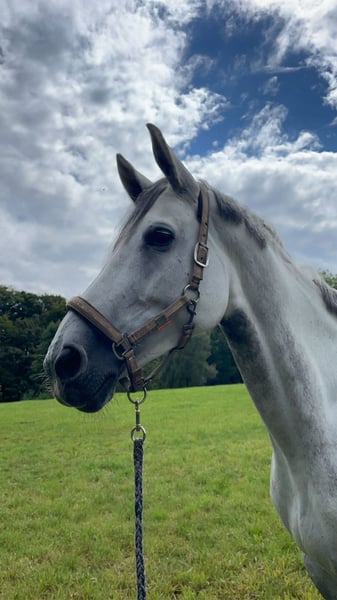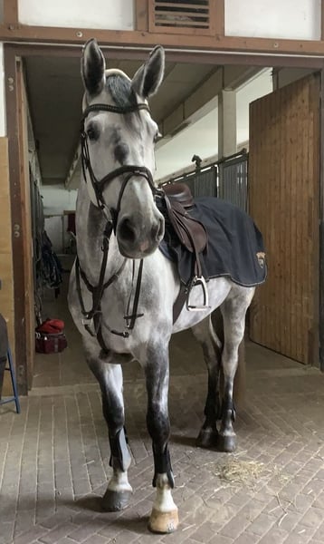 For sale is this loving 9-year-old mare. B-Two is an approximately 1.70m tall DSP and has a heart of gold. She has been successfully presented at competitions up to L-level show jumping. She provides the rider with a lot of security and always wants to please. When out riding, she is reliable, does not act recklessly, and always pays attention to her rider. Whether alone or in a group, B-Two is always easygoing. She is also very well-behaved and careful with children, so I can easily imagine her as a children's horse or for therapy purposes. She is farrier-friendly and loading-friendly, knows traffic, agricultural vehicles, and the daily routine in the stable. In the herd, she is low-ranking and avoids conflicts. During the day, she is in the pasture and comes into her box at night. Due to a clinical finding, I am offering her as a conditionally rideable companion to the very best hands. Home before price!!! For further information, I am happy to provide it (please contact me by phone or WhatsApp) 0176-45705757.