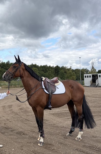 For sale: German sport horse – show jumping mare A stylish and promising German sport mare by Chicos Boy, born in 2017, is available. "Ida" impresses with her reliability, quality, and experience in show jumping, as well as her particularly affectionate nature. She is a dependable jumping horse with great potential, suitable for both young horse development and competition. She has already competed in M jumping classes and has placements up to 1.20 m internationally. It is with a heavy heart that I have to part with her, as I also have another young horse and, due to my studies, cannot give both the attention they deserve. Since she is very dear to me, it is especially important to me that she finds a good and loving home. The mare is rideable, attentive, and shows a solid training level in jumping. She has a balanced temperament and a friendly, open-minded personality, making her a true sweetheart. Thanks to her excellent pedigree, versatile suitability, and especially her reliability, she is ideal for ambitious beginner riders and amateurs. A true all-round talent that impresses with her quality and character. Please feel free to contact me for further information or if you are interested.