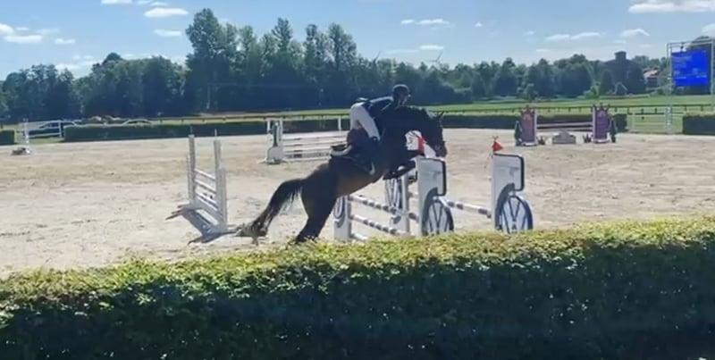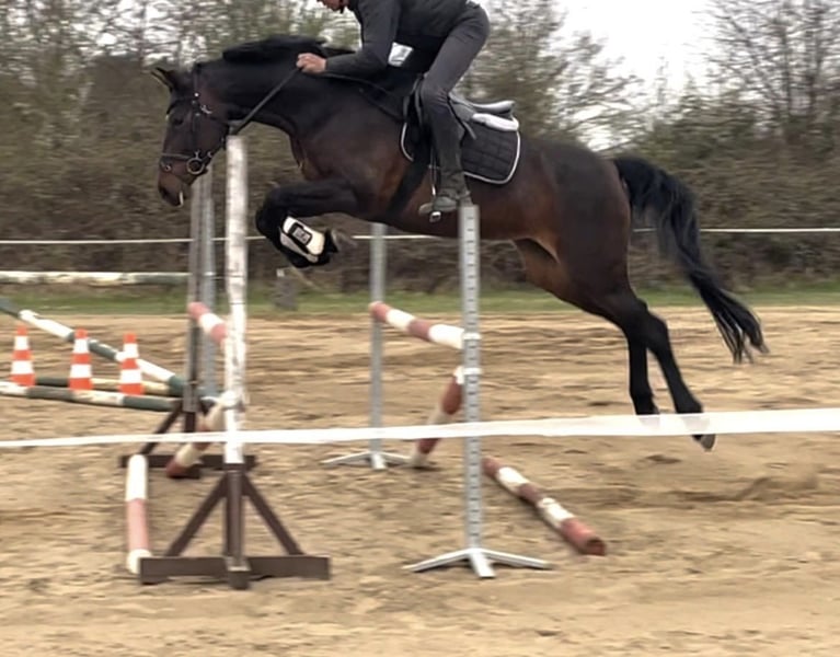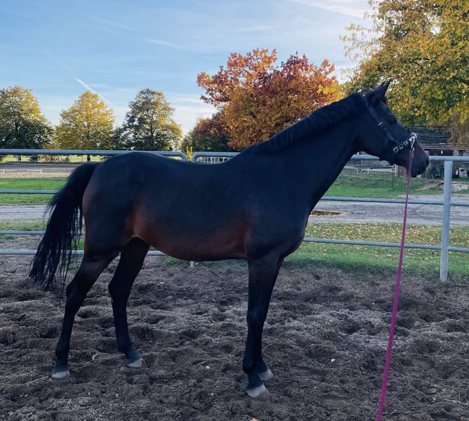 For Sale: An impressive German sport horse – an elegant and talented mare, born in 2017. With her striking bay coat and a shoulder height of 17.6 hh, she combines size, presence, and versatility. This show jumping mare is well-trained and has a solid basic education in show jumping. She demonstrates a strong jumping aptitude, with good bascule and the necessary drive to clear fences. However, she is a typical mare and not suitable for beginners; at least solid riding at Level L is recommended. The mare was bred and trained in dressage by myself. At age five, she was given three months of training to gain experience in jumping competitions at levels A and L. She handled this with flying colors and received scores of 8.6. Afterwards, she returned home and was ridden dressage 3-4 times a week. But since she repeatedly shows a desire to jump, and I primarily ride dressage, I have decided to sell her. She has been jumping once a week for the past four weeks. With a bit of patience, she could develop into a talented sport horse for more advanced disciplines. The mare is completely sound and healthy, with no issues. An older ultrasound report is available and shows no findings. If interested, I am happy to provide further information and arrange a viewing.