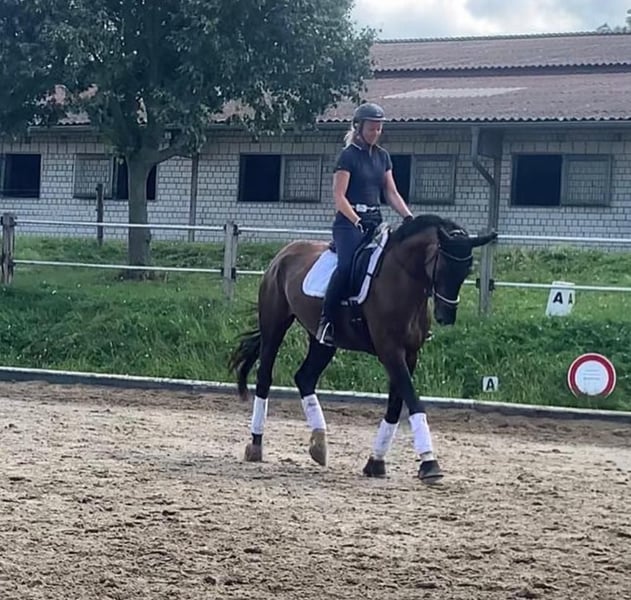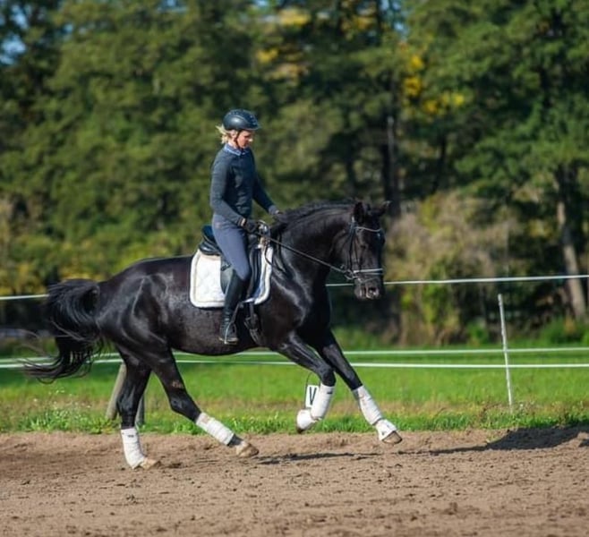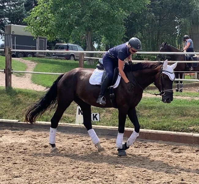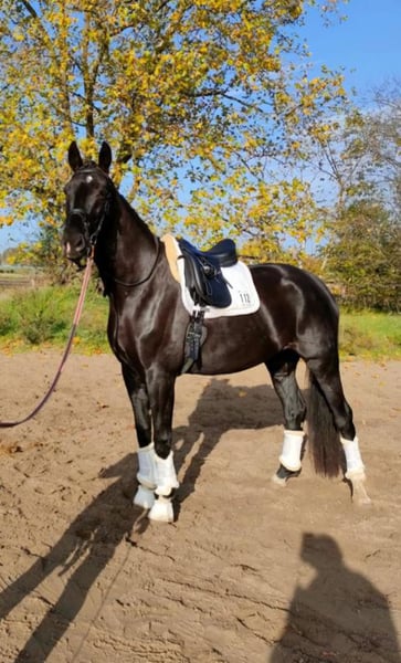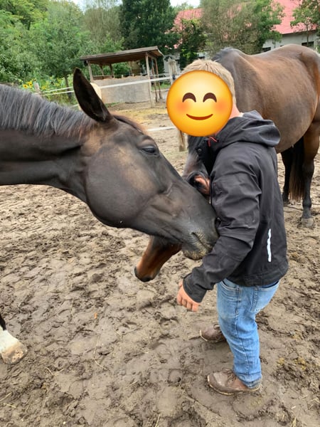 Deutsches Sportpferd, Stute, Rappe, 183 cm Großrahmige liebevolle Stute La Petit Noir hört auf den Spitznamen Pitti. Sie ist eine 9jährige dem Menschen zugewandte und verschmuste Stute von Le Vivaldi x Fürst Heinrich x Amerigo Vespucci xx. Sie ist lauffreudig, langbeinig, hat raumgreifende Gänge, Schub aus der Hinterhand und einen einwandfreien Charakter. Eingetragen ist sie mit einer 7,0 in Stutbuch I des Zuchtverbands Brandenburg-Anhalt. Ihr Wesen ist aufmerksam und sensibel und sie reagiert auf feinste Signale. Sie ist herdenverträglich und lebt derzeit mit Stuten und Wallachen zusammen. Sie kümmert sich liebevoll um die Youngsters in der Herde. Ausgebildet ist sie dressurmäßig auf A-Niveau, aufgrund eines Weideunfalls ist sie NICHT mehr reitbar. Sie freut sich aber über Zuwendung, Longenarbeit, Spaziergänge und liebevolle Gesellschaft. Mit Menschen absolut verschmust und mit Kindern sehr vorsichtig! Durch ihr freundliches Wesen und ihre Gelassenheit eignet sie sich für den Zuchteinsatz oder auch als liebevoller Beisteller. Natürlich wurde sie regelmäßig geimpft und entwurmt. Sie geht problemlos auf den Hänger und steht absolut brav beim Hufschmied (Barhufer). Ihr Vater Le Vivaldi ist bewegungsstarker Hengst in ultramoderner Aufmachung. Auf der Hannoveraner Körung 2014 in Verden als Prämienhengst ausgezeichnet, absolvierte er 2015 erfolgreich den 30-Tage-Test in Neustadt/ Dosse. 2017 legte er einen weit überdurchschnittlichen Sporttest in Münster/Handorf mit hohen Noten in allen Teilbereichen ab und qualifizierte sich mit einer 8,6 zum Bundeschampionat. Seine Nachkommen wurden in vielen Zuchtgebieten mit einer Prämie ausgezeichnet und erzielten überdurchschnittliche Preise auf Auktionen. Ich gebe sie schweren Herzens ab und wünsche mir für sie ein Zuhause im Offenstall oder mit viel Auslauf, in dem sie weiterhin geschätzt und umsorgt wird. Preis: VB Standort: Schönwalde-Glien Kontakt: Antje Nitzschmann, 0170/48 12 889