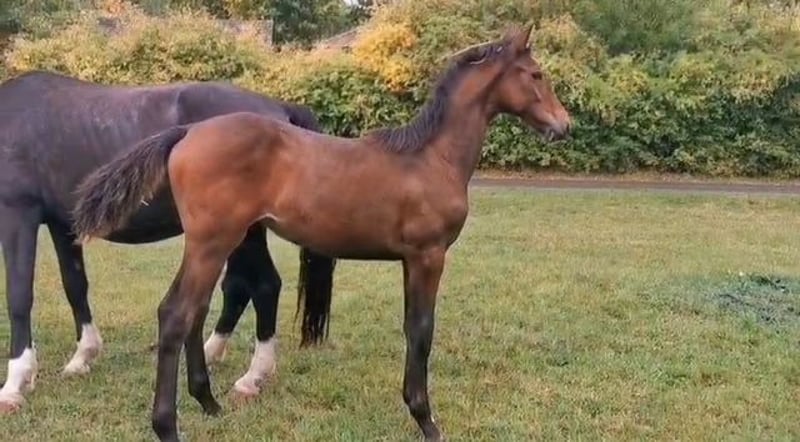 Sportiv aufgemachtes Stutfohlen, was sich für den späteren Einsatz im Springsport empfiehlt.