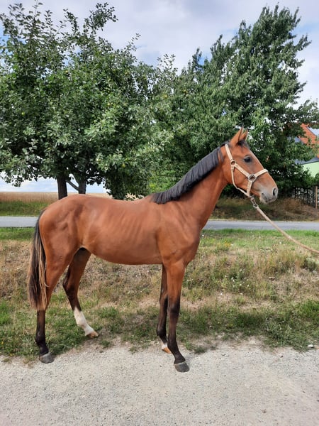 Zum Verkauf steht dieser 2-Jährige aus dem ersten Jahrgang von Stakkato Cornet. Als Fohlen prämiert und als Deutsches Sportpferd registriert. Er läuft zur Zeit mit in der Wallachherde und ist nicht sehr hengstig, aber gut entwickelt. Nachts steht er in der Box. Kennt Führen, Putzen und regelmäßig Hufschmied. Zur Zeit 1,61m gemessen, Endmaß ca.1,75m. Platz vor Preis bei fördernden Händen! weitere Videos auf Anfrage Seine Mutter St.Pr.St Leona Lewis v. Ludwig von Bayern trägt den Titel DSP-Prämienstute Zucht. Alle ihre Fohlen sind Prämienfohlen. Ihre beiden Töchter sind ebenfalls Staatsprämienstuten. Le Casira B ist in Springprüfungen Kl.L erfolgreich und hat die Feldleistungsprüfung 3jährig mit 8,0 gewonnen. Lia Casira B war Reservesiegerstute beim Sächsisch-Thüringischen Stutenchampionat in Wolfersdorf. Mit Wertnoten von 9,5 im Freispringen. Sie hatte bereits ein Auktionsfohlen auf der DSP-Eliteauktion in Darmstadt-Kranichstein. Alle Pferde aus der Stutenfamilie sind brav und umgänglich. Auch beim Anreiten gibt es keine Probleme. Für weitere Fragen zum Jährling gerne anrufen. Weitere Videos können auf Wunsch gemacht werden. Er könnte jederzeit umziehen. Ist bereits geimpft gegen Influenza, Tetanus und Herpes, sowie Regelmäßig entwurmt.