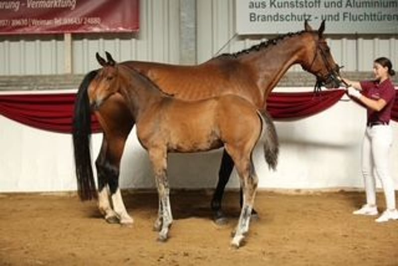 Sportiv aufgemachtes Hengstfohlen, was sich für den späteren Sporteinsatz empfiehlt. Zum Fohlenchampionat in Thüringen konnte es sich bereits vor großem Publikum präsentieren.