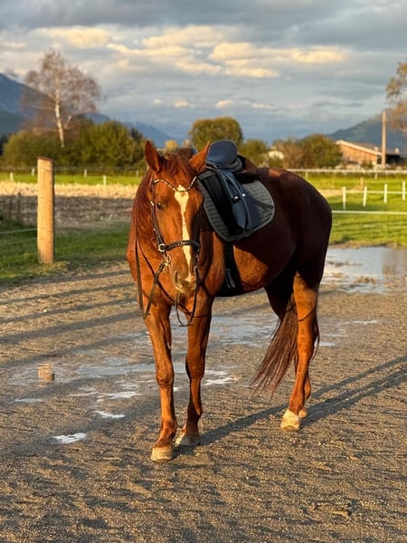 Verkaufe sehr braven Traber-Wallach, geboren 2021, in der Farbe Fuchs. Das Pferd ist ca. 165 cm groß und eignet sich hervorragend für die Freizeitgestaltung. Ein zuverlässiger Begleiter, der durch sein freundliches Wesen und seine Vielseitigkeit überzeugt. Perfekt für Reiter, die einen angenehmen und motivierten Partner suchen. Er ist nie Rennen gelaufen und wurde von mir freizeitmäßig im Gelände sowie am Platz geritten. Er ist bei allem sehr brav und total lernfähig. Geht auch problemlos alleine ins Gelände. Kennt kein Durchgehen oder Buckeln, etc. Er ist barhuf und steht im Moment in einem Offenstall im Sommer und im Winter ist er nachts in der Box. Zubehör kann gerne dazu erworben werden. Er ist wirklich ein absoluter Schatz. Kontakt gerne per Mail: lisa.fitz1@hotmail.com