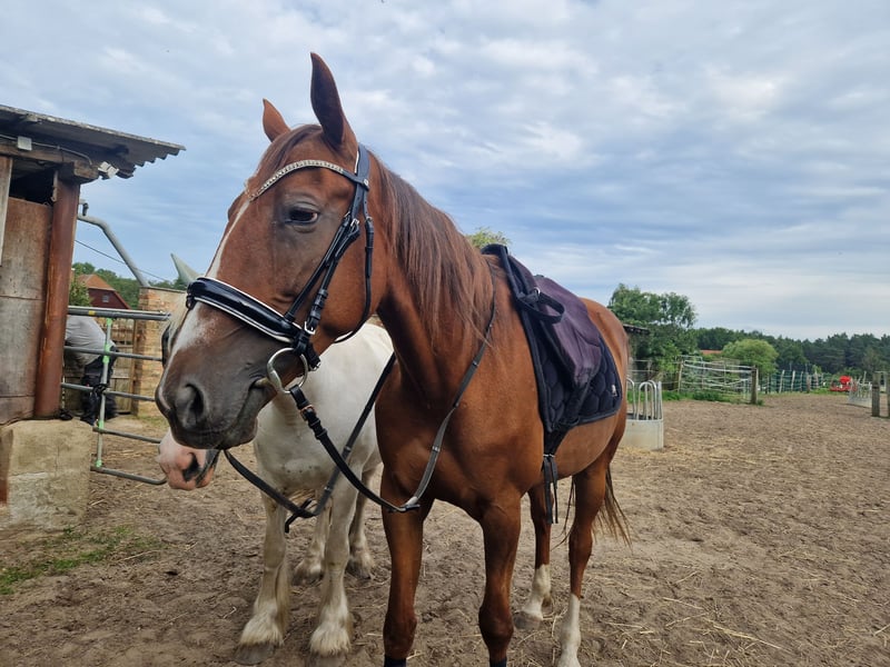 Hallo, suche für meine schöne Traber Stute Hope ein neues Zuhause. Sie ist 8 Jahre alt, 164cm groß und hat einen Charakter aus Gold. Sie ist ranghoch was auch leider der Grund für die Abgabe ist. Da sie mit meiner ersten Stute (halbseitig blind) zu zweit im Paddock steht. Bei der Arbeit braucht sie eine liebevolle, konsequente Hand, zeigt sich aber auch sehr lernbereit, aufgeschlossen und konzentriert. Sie wird aktuell geritten und durch regelmäßige Bodenarbeit und longieren gefördert. Zuletzt hat sie die Freiarbeit kennengelernt (noch nicht so gefestigt). Ich gebe sie als Freizeit- / Familienpferd ab, da sie auch sehr menschenbezogen und verkuschelt ist. Sie ist schmiede-, verladefromm und zeigt sich beim Tierarzt auch brav. Sie ist kerngesund, hat die erste Impfung schon und ist entwurmt. Folgendes Zubehör ist schon im Preis enthalten: - 2x Halfter - 1x Halfter- Kappzaum - 1x Fesselkopfgamaschen - 1x Hufglocken - 1x Regendecke - 1x Outdor-Decke 50g - 1x Fliegendecke - 1x Fliegenmaske - 1x Fliegenhaube Ich bitte nur um ernsthafte Anfragen.