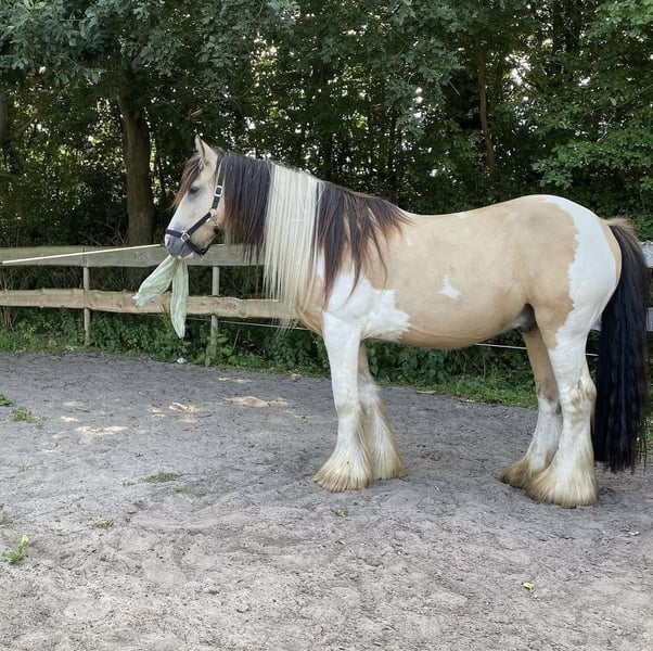 💛 Zu verkaufen: Wimpy (Norman) – wunderschöner buckskin bunter Tinker-Ruinenhengst (2011) 💛 Wimpy ist ein äußerst hübscher, sensibler Tinker mit einem weichen Herzen. Er ist lieb, ehrlich und feinfühlig, benötigt jedoch Zeit, um Vertrauen zu fassen. Er ist kein Pony, das man einfach aufsitzt und losfährt – er braucht Ruhe, Geduld und Verständnis. Er ist verkehrssicher, brav auf dem Anhänger und im Umgang stets freundlich. Er hat nie getreten oder gebissen und für Kinder oder Hunde keine Scheu. Unter dem Sattel braucht er einen erfahrenen, ruhigen Reiter; bei Spannungen kann er anfangen zu rennen oder zu springen, aber mit sanften Hilfen läuft er schön und nachgiebig. Es wurde viel mit ihm vom Boden aus gearbeitet: Freiarbeit, Doppelpeitschen und Klickertraining. Er kommt gut mit Struktur zurecht – diese braucht er, um sich zu entspannen. Der Verkauf fällt mir schwer, aber durch den Weggang seiner Pflegeperson und das Fehlen einer echten Verbindung möchte ich ihm einen Platz geben, an dem er wirklich sein volles Potenzial entfalten kann. ✨ Wimpy sucht jemanden, der sich Zeit nimmt und eine Bindung aufbauen möchte. Für diese Person ist er ein unglaublich lieber und besonderer Pony. ✨ Er ist seit längerer Zeit nicht mehr unter dem Sattel, da er Spannungen zeigt und seine Pflegeperson ihn verlassen hat.