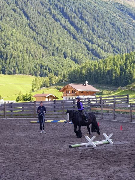 Wegen Bestandverkleinerung verkaufen wir unseren Tinker Hobbit Budy. Der Lauser ist der große Liebling aller Kinder, mit seinen blauen Augen und der wunderschönen langen Mähne verzaubert er jeden. Hobbit geht bei uns seit 6 Jahren im Schulbetrieb, er wird sowohl für Longestunden als auch Einzelunterricht eingesetzt. Da Hobbit nicht so groß ist trabt er relativ flott. Kleine Sprünge meistert er ganz gut. Hobbith ist ein super cooles Pferd für Reiter mit schon etwas Erfahrung. Am Putzplatz steht er brav und lässt sich von Kindern striegeln und verwöhnen, auch beim Hufschmied ist er brav, er geht barhuf. Hobbit ist regelmäßig geimpft und entwurmt und die Zähne gemacht. Hobbit kennt Boxenhaltung, Weidehaltung und Paddock Haltung.