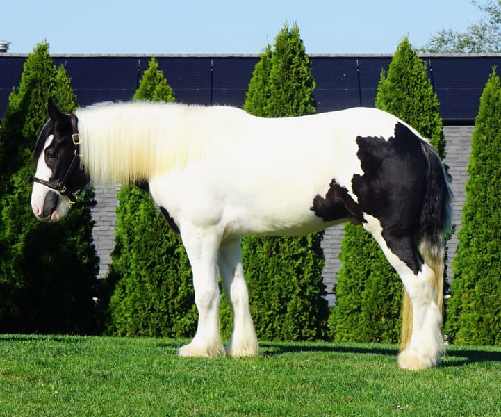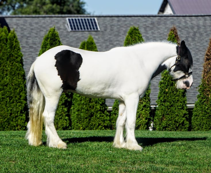 ⚜️𝐓𝐇𝐄 𝐅𝐀𝐋𝐋 𝐇𝐄𝐑𝐈𝐓𝐀𝐆𝐄 𝐂𝐋𝐀𝐒𝐒𝐈𝐂⚜️ Happening now thru MONDAY | NOVEMBER 3rd - Available EXCLUSIVELY on HorseBid's website! For more details and to register visit: www.Horsebid.com CONSIGNOR CONTACT: The Heart & The Horse 330-763-4575 LOCATION: Urichsville OH BREED: Gypsy Vanner REGISTERED: Yes REGISTERED NAME: Silhouette Farms Commissars Comanche COLOR: Black & White HEIGHT: 15.2 AGE: 3 GENDER: Gelding Everyone meet Comanche. Comanche is a 3 year old gypsy gelding, standing approx 15.2 hands. Comanche has been started under saddle around 90 days, and has a great foundation, both on the ground and under saddle. He has a very sweet, laid back disposition, making him an exeptionanl individual to be around. He has had time riding in the arena, learning to soften to pressure, and building a great foundation on his WTC. He has been ridden on the road, and exposed to traffic, and does great with obstacles. If your looking for a gypsy gelding with a great foundation, and disposition Comanche might just be they guy for you. If you have any questions feel free to reach out.