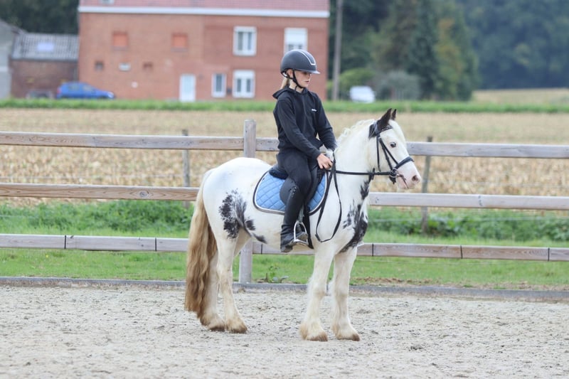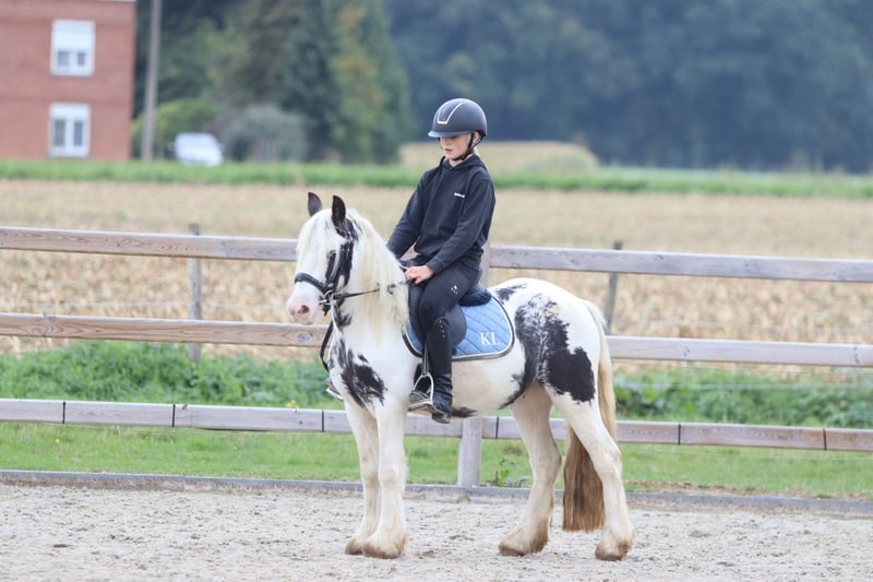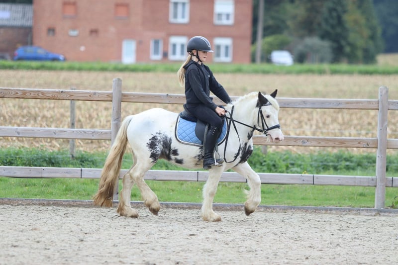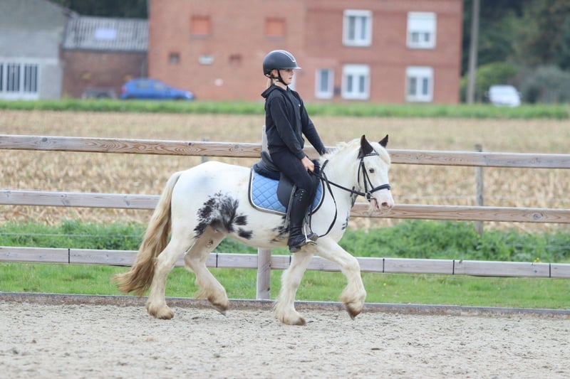 ✨ Poney Tinker Cobra ✨ Cobra est un magnifique poney Tinker de 4 ans, mâle, mesurant 1,26 m. Il possède un caractère très doux et se distingue immédiatement par ses belles marques et son œil bleu unique. 🩵 En liberté, il est très calme et câlin, un véritable amour qui adore recevoir de l’attention. Sous la selle, il est très sage et facile à monter. Il fait un petit saut et aime également partir en balade en extérieur. 🌿🐎 Cobra est un poney polyvalent agréable, qui, grâce à son tempérament doux et son allure joyeuse, conquiert le cœur de tous ! 💫 Plus d’informations ? +32 475 68 22 43 Pour voir des vidéos, n’hésitez pas à consulter notre site internet
