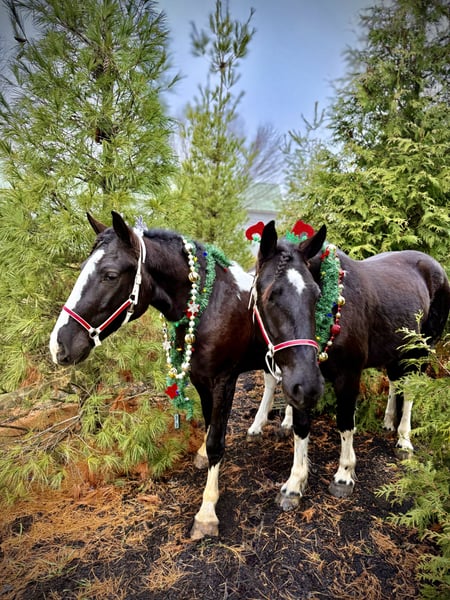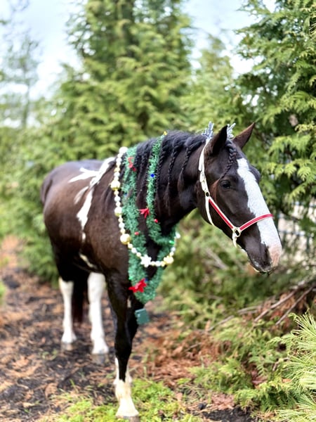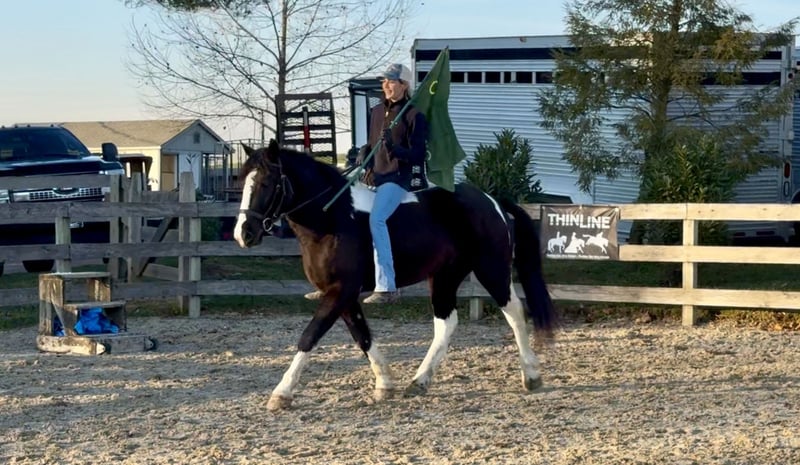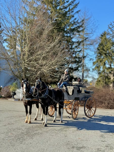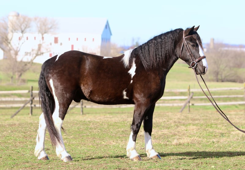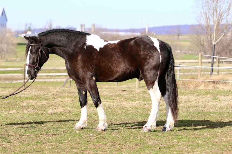 🎄𝐓𝐇𝐄 𝑯𝒐𝒍𝒊𝒅𝒂𝒚 𝐂𝐋𝐀𝐒𝐒𝐈𝐂🎄 Happening now thru MONDAY | DECEMBER 15th - Available EXCLUSIVELY on HorseBid's website! For more details and to register visit: www.Horsebid.com CONSIGNOR CONTACT: CM Farms 717-875-2061 LOCATION: Gap, PA BREED: Gypsy Vanner/Spotted Draft X REGISTERED: No COLOR: B/W Paint HEIGHT: 14.3-15 AGE: 3 GENDER: Gelding Meet ✨Hershey!✨ (Sibling to Candy) — this perfectly put-together boy is a 3-year-old, 14.3–15hh Gypsy Vanner/Spotted Draft X gelding. This pair is some of the nicest-looking 3-year-olds we’ve come across—already so nicely filled out and round! Hershey is broke to ride English, Western, bareback, and drives both single and double! This guy is a blast to ride and such a fun horse to have in the barn.☺️ Under saddle, Hershey takes up leg well, and he tends to be more of a push ride. He’s sensible, smart, willing to learn, and well-behaved! He already walks, trots, and canters both directions. This guy has both leads, easy transitions, and he’s so comfortable it’s like sitting on a couch! He hasn’t been drilled or worked hard at his age; he’s just been getting the basics down. He stands patiently to mount, lunges, walks and trots over poles, and is all-around an easy, simple horse to bring along. He is the definition of a steady Eddy and guaranteed to be the same horse every time you pull him out. This guy has even popped over a couple of cross rails, and he is quite athletic! Hershey truly has some of the cutest movement ever. He’d be a great project for a professional looking for a versatile young horse, or we’d even trust him to be easy enough for an AA or JR rider to continue! This guy is so talented, and we could truly see him thriving in any discipline! He is incredibly sweet and special. It’s impossible not to love this lil chunk! ❤️ On the trail, Hershey has miles under his belt, and he’s quite the trailblazer! He’s brave and will lead the group, or mosey along in the middle or back if that’s where you put him. He’s sure-footed in different terrain and always takes care of his rider. You can ride him out on a loose rein and relax. He’s been through wooded, rocky areas and cantered through the open fields. He’s even ridden to town with semi trucks going by him! He’s completely traffic-safe and sensible. He will cross creeks or go into the river without hesitation. He’s used to encountering bikers, hikers, and dogs, and always keeps his wits about him. He’s been desensitized to the tarp, flag, smoke—and he LOVES to play with the ball. Seriously, it will keep him occupied for hours! 😆 He’ll go through tunnels or over bridges; all you have to do is point and go. We can’t say enough good things about this boy—he’s been so easy and just a pleasure to have in the barn. 🥰 Under harness, Hershey has been driven both single and double. He works well with others and is brave alone, and we couldn’t ask him to be much better at this age! He’s light in the reins, stops with a “whoa,” and has a nice reverse. He has the basics down without being driven into the ground. If someone wanted to continue him in this direction, he’d be such a fun project! He pairs nicely with Candy—and they make the cutest team. Ones that match up as nicely as they do are hard to find, and we’d love to see them end up together! 🙌🏼 In the barn, Hershey is a well-mannered little gentleman. He stands to groom and tack up, and picks up all four feet easily. He’s well-behaved for the vet and farrier and has zero vices in the barn or turnout. He’s a lovebug and will greet you in the pasture begging for pets and attention. Hershey gets along with everyone and still has a cute playful personality. He will try to convince the older horses to play but is smart enough to get the hint if they aren’t into it. He loves to be groomed, get scratches, be braided, and he stands to bathe. We’ve loved having him and his sister in our barn and can’t wait to see what their future holds! If you’re looking for a super sensible, honest-as-they-come, talented, and lovable young horse—don’t miss out on this sweet boy! ⭐️ UTD on shots, coggins, dentist, deworming, and farrier.
