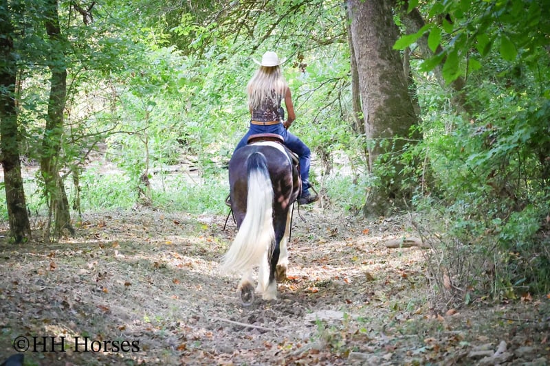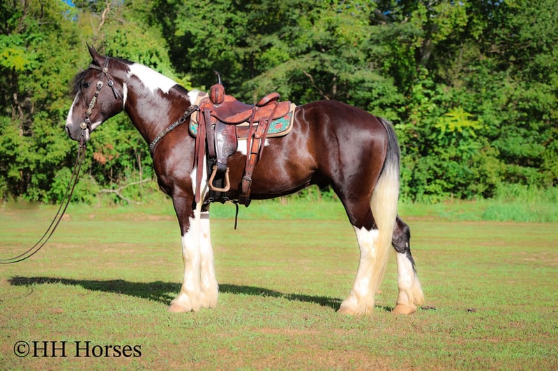 ONLINE AUCTION Place your bids at www.PlatinumEquineAuction.com Starting Bid $3500 Auction ends September 14th, 2025 Need a new saddle? Check out White Rock Saddles on our website or Facebook This is “BIG N’ RICH”, a very stout, extra flashy, super fancy moving, GYPSY VANNER SPOTTED DRAFT CROSSBRED gelding that is broke to ride and drive. He stands 16 hands tall and is 4 years old. He is broke to work double or single and has pulled hay wagons, pumpkin patch wagons, and been hooked to all farm machinery. He has pulled a cart and carriage through holiday parades. He has been in heavy traffic and lots of commotion with no issues. He is a superb trail mount that will go anywhere you point him, willingly and steadily. He is sure footed through very rocky and steep terrain and he takes his time down rough embankments and up and down the rugged trails. He is a love bug on the ground and will soak up all the attention you will give him. He lopes nice circles, catches his leads, stops easily, and backs up. He has been shown in lead line with novice riders. He has excellent ground manners, stands tied, loads, bathes, and hauls with no fuss. Located in Flemingsburg, KY. Contact Erin with HH Horses 304-238-4155 with any questions or to make a Buy It Now Offer. ONLINE AUCTION Place your bids at www.PlatinumEquineAuction.com Starting Bid $3500 Auction ends September 14th, 2025 Need a new saddle? Check out White Rock Saddles on our website or Facebook