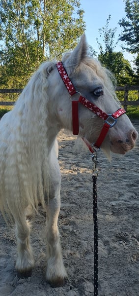 Our Milky Way is a 6-year-old, 1.26-meter tall Tinker gelding who not only impresses with his beauty. This little guy has a heart in the right place. He is a late developer and has had enough time. Now, all doors are open for him. He is accustomed to carrying children on his back and is familiar with groundwork, walks, and has even participated in children's birthday parties. Milky Way is initially a bit skeptical towards new strangers, but this only shows that he is shy. Essentially, he is an honest pony that, with further training, will definitely become a super nice children's pony. Of course, he gives all his feet and allows children to groom and lead him. He spends his days in a mixed herd on a paddock/pasture and nights in a run-in stable. A move can be organized.