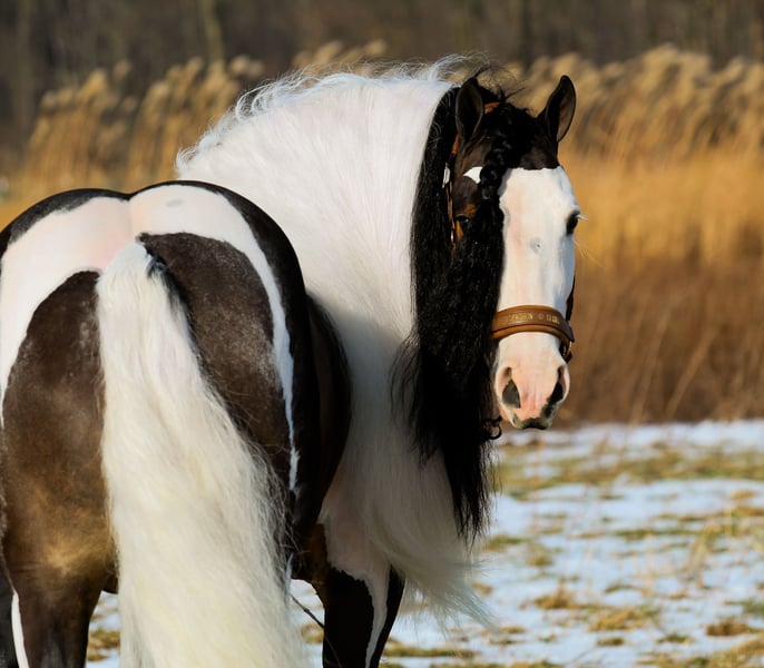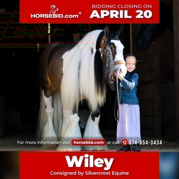 ⚜️𝐭𝐡𝐞 𝓔𝓵𝓲𝓽𝓮 𝐒𝐩𝐫𝐢𝐧𝐠 𝐂𝐥𝐚𝐬𝐬𝐢𝐜⚜️ Happening now thru MONDAY | APRIL 20th - Available EXCLUSIVELY on HorseBid's website! For more details and to register visit: www.Horsebid.com Silvercrest is excited to present Triple R Ranches So Worth It AKA Wiley. Wiley is a rare soul combining stunning looks with a devoted 5 Star attitude and wrapping it up with 3 quality gaits! Wiley will greet you every morning with a look of peace and contentment on his face. He is the kind you can hug, snuggle, and squeeze, and he truly seems to enjoy every bit of it! Wiley is also multi-talented. Whether your goal is to just relax and have a calm trail ride or enter the arena and do some work, he is happy to comply. Wiley goes loose and low in Western style carrying a shank or is nice and steady in a snaffle for your sport horse needs. He has seen almost everything a horse can be exposed to and takes it all in stride in his mild-mannered way.Wiley has been ridden and enjoyed by a 5 year old girl and together they have traveled to town for coffee as well as she has taken him to the beauty parlor to get his make up done . He is an absolute dream machine and would thrive greatly in movie settings and on stage performances as he has seen it all from sorting cows, goats, dogs, tractors, fog machines, wild kids, smoke, flames, and fire. He also enjoys riding out on trails and will take the lead or tag along, however you prefer. Wiley will cross logs, go through creeks and has a curbside pickup button installed to pick you up wherever you wish. His buttons have the perfect balance between sensitive enough for a small rider to influence them but steady enough to provide safety and control. Wiley also pulls your cart or carriage and can provide enjoyment for both young and old. Up and down main street or a quick jog onto the back roads, Wiley will do it with excellence.This sweet boy has also dabbled in liberty work and currently has all the basics installed. He works alongside you and has a good recall, if you blow the whistle he’s back at your side .Wiley is also starting on his advanced liberty work and is currently working alongside a Gyspy Vanner Stallion both at liberty ,if your looking for a best friend to compete in the ILHA this fall here is one that has a great start .Wiley has also been jumped over small jumps and doesn’t seem to mind the change of scenery. Wiley is GVHS registered and comes from quality parents. He requires no maintenance other than routine horse care. Wiley can either be barefoot or shod. His feet are exceptional and he has logged a lot of barefoot miles with no issues. Wiley can live in a stall or in a group turnout. He has zero vices. This cute fellow measures in at the 13.2 hands and he is the perfect size for a step up pony or an adult mount as he is well built. Wiley has a set of basic X-rays on file as well as PPE done .He is up to date on his spring shots and ready for his 5 star family today.