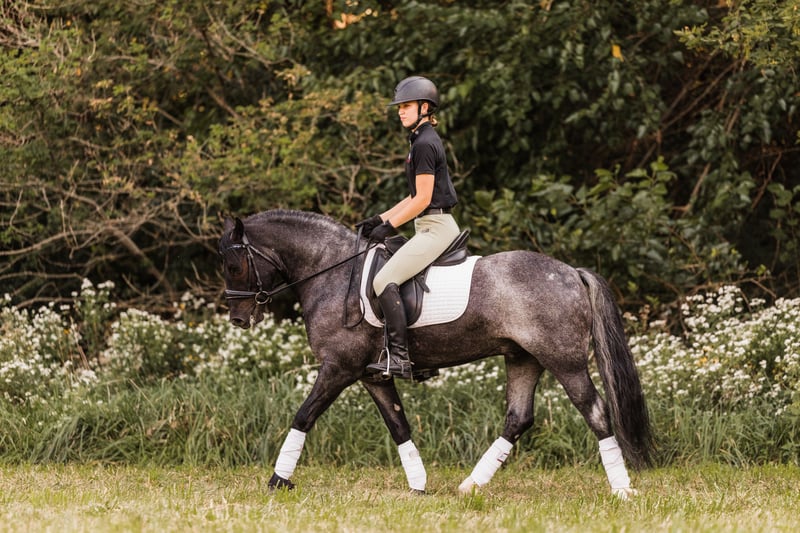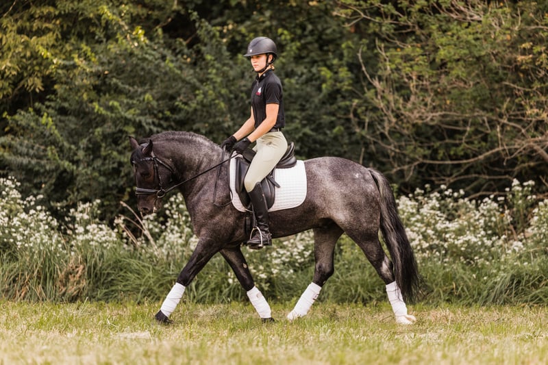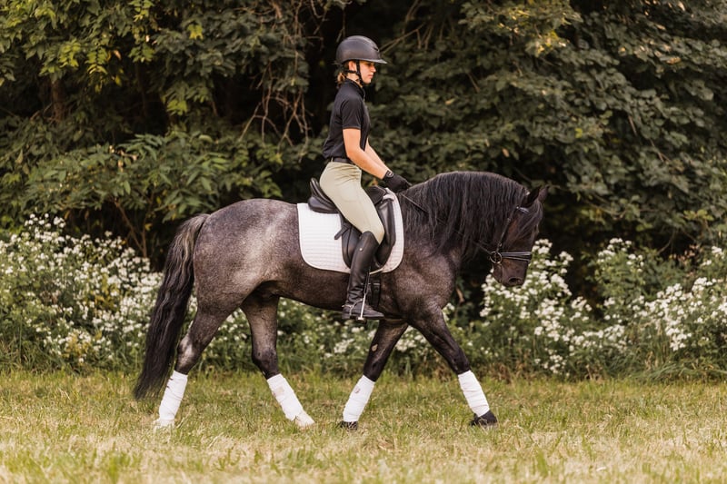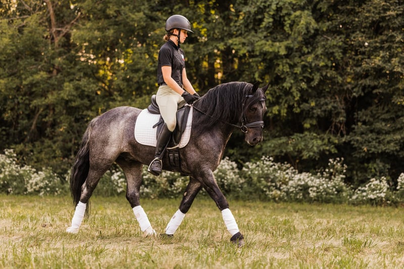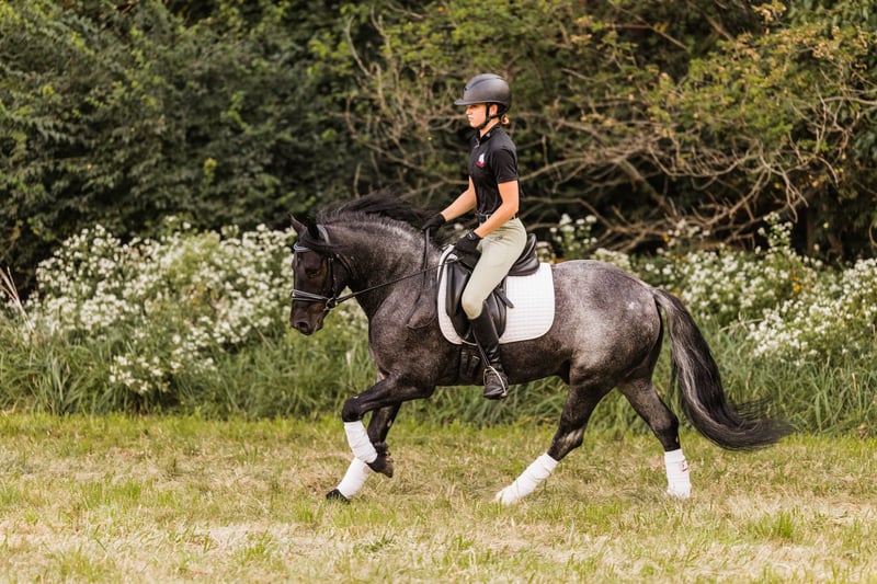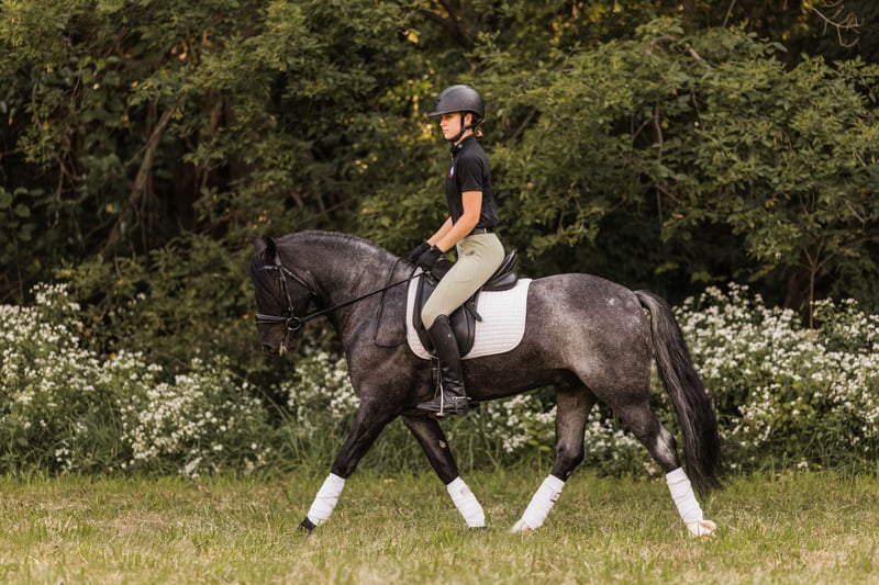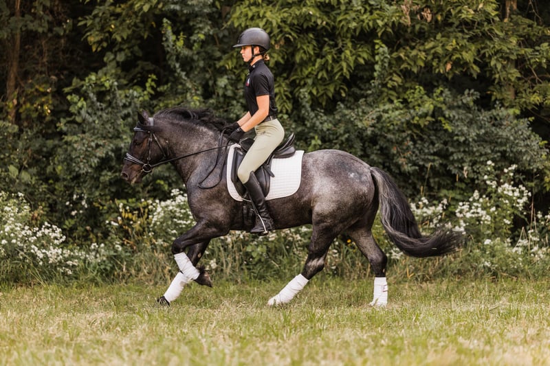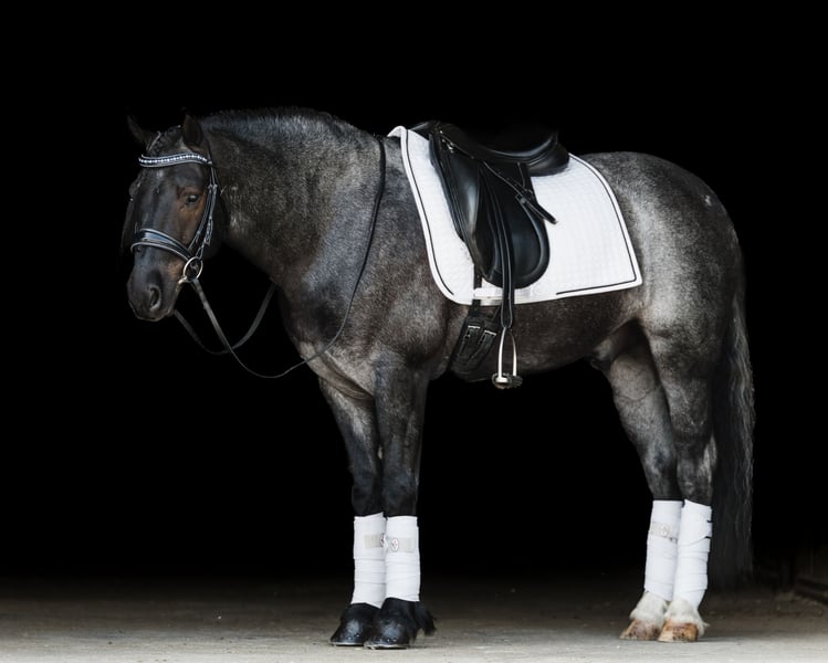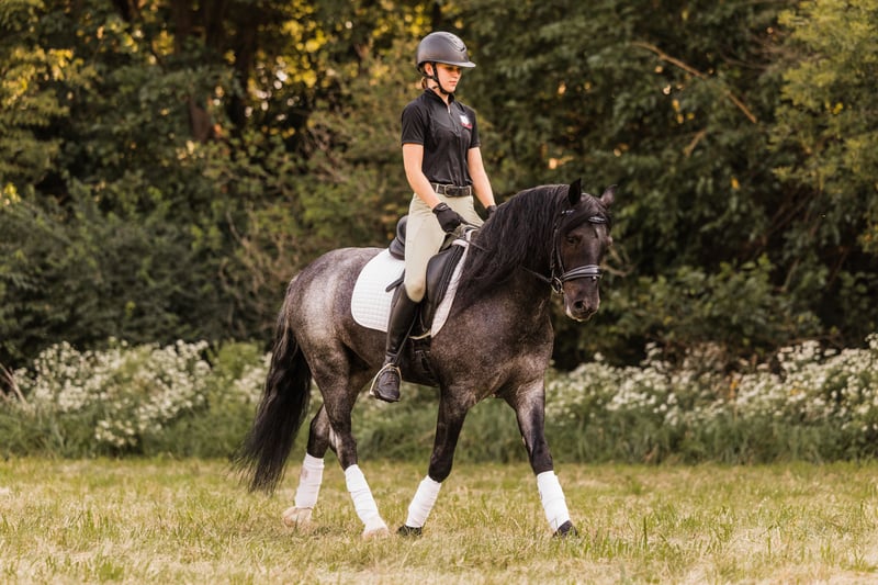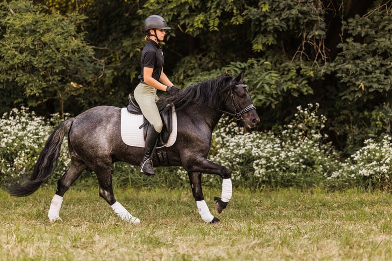 The Gypsy Horse has a distinctive and eye-catching appearance that sets it apart from other breeds. They are known for their long, flowing manes and tails, which are often kept thick and untrimmed. The feathering on their feet is also a characteristic trait of the breed, adding to their unique look. The breed comes in a variety of colors and patterns, including black and white, brown and white, and piebald, and they often have a very stocky build. Their compact size, coupled with their powerful build, makes them an ideal breed for both riding and driving.