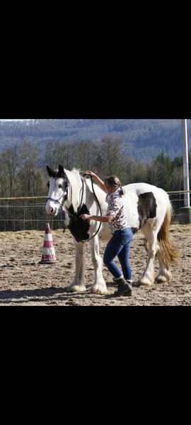 Zum Verkauf steht nicht nur eine Bildhübsche Tinker Stute - Nein : eine Lebensversicherung für die ganze Familie. Sie ist 10 Jahre alt und stolze 148 cm groß. Sie ist ein Traum von Pferd, für jeden der ein absolutes Verlasspferd sucht. Püppi ist gelassen, unschreckhaft, aufgeschlossen und sehr kuschelbedürftig. Die Bilder sprechen für sich und ich habe viele Videos mit Freiarbeit. Sie ist ein ausgebildetes Reitpferd, das für Anfänger und auch Fortgeschrittene Reiter geeignet ist. Egal ob Bodenarbeit, Longieren, Ausritte gemütlich oder auch mal flotter, Püppi ist für alles zu haben. Selbstverständlich ist sie regelmäßig geimpft, entwurmt. Sie trägt vorne Eisen kann aber auch je nach Bodenverhältnissen barhuf laufen. Sie ist kerngesund , keine Mauke keine Raspe. Jeglicher Arzt hat an uns nicht verdient.... Püppi ist rangmittel sie steht in einer gemischten Herde im Offenstall. Kennnt aber auch Stutenherde mit wenigen Pferden. Püppi möchte nicht in einer Box leben, sie genießt das Leben in der Herde und unter freiem Himmel, was wir uns für das neue Zuhause auch für sie wünschen. Ich habe sie seit sie 6 Monate alt ist. Wir haben viel erlebt, gekämpft, gelacht und geweint. Püppi ist kein Gewichtsträger. Ich kann mit ihr ins Gelände mit Sattel, mit Pad oder ohne Sattel.... Sie ist wahnsinnig bequem und weich in den Gangarten. Ich habe regelmäßig an Kursen teilgenommen. Highlight war aber letztes Jahr das "Savvy Center" in Brebersdorf bei Nina Gassner und Josh Baker. Da standen wir knapp 2 Monate um uns mal so richtig General zu überholen, lernten das Parelli Level 1 und machen das auch prima. Gute Ausbildung kostet aber leider auch Geld.... Sie kennt Hunde, Traktoren, Hänger reiten wir rein, einfach aus Spaß, Sanct Martin sind wir öfter geritten. Dorfgeräusche interessiert sie nicht. Ich kann Kinder Hunde Plane drauf legen alles cool. Ausritte mit meiner Tochter auch mal im Galopp null Thema. Wir wünschen uns einen liebevollen Menschen der es schätzt ein so tolles Pferd zu haben und gemeinsam Zeit verbringen möchte. Ich wünsche mir für sie, dass sie viel Bewegung hat, auch mal sich durchsetzen kann/muss weil sie eher träger ist. Auf dem Platz richtig arbeiten,macht ihr bedingt Spaß aber alles was schneller sein muss findet sie nervig. Warum ich das tolle Pferd verkaufe? Ich möchte reiterlich weiter kommen, möchte mehr auf Kurse und Trail gehen. Püppi ist dafür nicht das Pferd, man kann auch kein Geländewagen in ein Sportwagen zaubern. Es gibt noch vieles zu erzählen oder zu zeigen was sie kann. Sie kann mit Zubehör abgegeben werden, ein Probereiten ist möglich, allerdings bei nur ernsthaften Interesse und nach vorheriger genauerer Absprache.