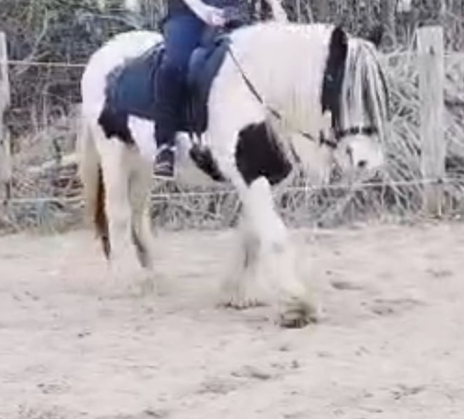 Annuncio di vendita: Giumenta Tinker In vendita c'è una bellissima giumenta Tinker, nata nel 2009. È un'eccezionale pezzata con un'altezza al garrese di 145 cm e si presta perfettamente per il dressage. Con i suoi occhi blu è davvero un colpo d'occhio. La giumenta si distingue per il suo carattere amichevole e il suo modo di essere equilibrato. È docile nel maneggio, ben educata e ha già esperienza nel dressage. I suoi movimenti sono agili ed eleganti, il che la rende un partner ideale per i cavalieri di dressage che apprezzano un'interazione armoniosa. Passeggiate anche da sola o uscite a cavallo non sono un problema. È adatta sia per cavalieri esperti che per principianti che desiderano progredire nel dressage. Ha un'allergia alla polvere e deve stare in un paddock aperto poiché non tollera il box. Per ulteriori informazioni o per qualsiasi domanda, sono a disposizione. Le visite sono possibili su appuntamento. Aspettiamo con piacere il vostro messaggio!