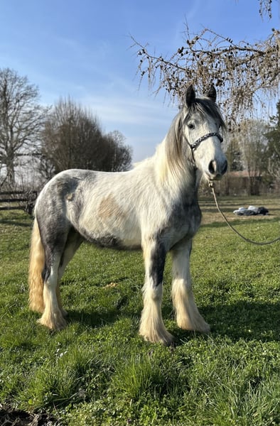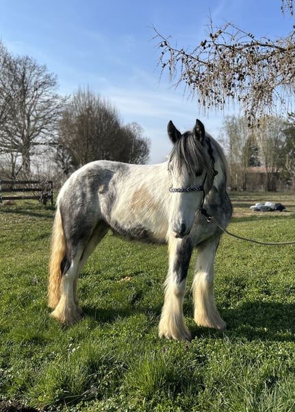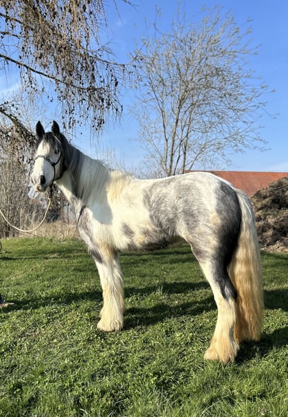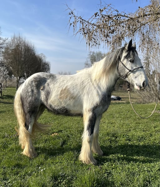 Born in 2023, this Irish Cob mare is looking for her new home. She stands approximately 1.45 meters at the withers. Currently, she walks calmly in basic gaits and is in ongoing training. Having grown up in a large herd, she is well-socialized and gets along well with other horses. The mare has already been ridden in small groups on the trail and is now being introduced to riding in the arena. She also comfortably carries larger riders. Additionally, she is farrier and loading friendly. If you are interested in this lovely mare, please feel free to call. For a visit with a preliminary ride and trial ride, we charge €40, which will be fully refunded upon purchase of the horse. We kindly ask for your understanding. TEL.: 01709343872