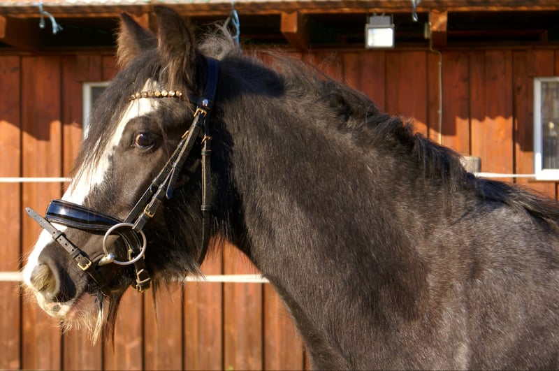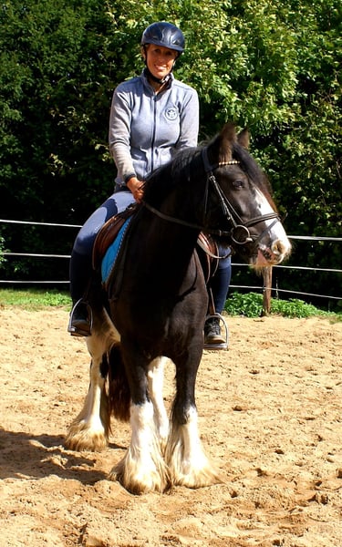 Lieve zwarte Blagdon Tinker-merrie met opvallende uitstraling en mooi exterieur. Goed bereden, geniet van vrijspringen en springt met een geweldige houding. Ze is bekend met honden en tractoren, geeft braaf hoefverzorging, geen reekalfjes of schimmels. Geduldig in de omgang en onder het zadel.