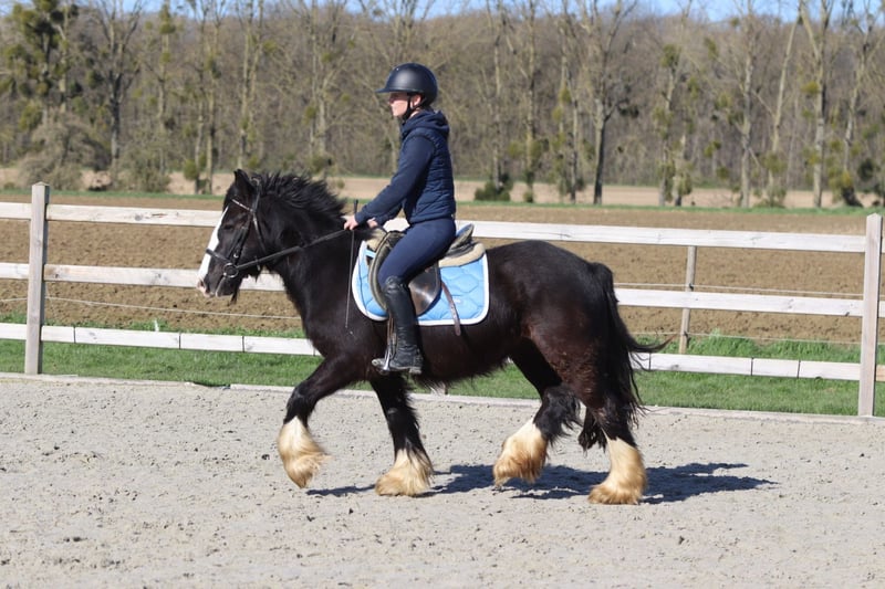Dolly to przepiękna czarna klacz Tinker w wieku 4 lat, mierząca około 1,33 m. Ma ładną, pełną sylwetkę i jest prawdziwą ozdobą. W codziennym kontakcie Dolly jest miłą i spokojną kucyk, który dobrze się prowadzi. Zna płynnie wszystkie trzy chodzenia i jest przyjemna w jeździe. Nie kopie ani nie przyspiesza niepotrzebnie, co czyni ją niezawodną pod siodłem. Dolly chętnie również chodzi na spacery, zarówno solo, jak i w grupie, i podczas nich zachowuje się grzecznie i zrelaksowanie. Dobrze dogaduje się także z innymi kucykami. Chętnie też skoczy małą przeszkodę. Podsumowując, to wspaniały i niezawodny koń o złotym charakterze. Więcej informacji? 0032 475 68 22 43 Na naszej stronie internetowej znajdziesz również filmy.