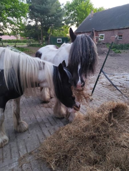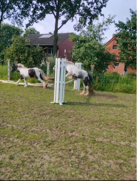 Unsere Stute ist 2021 geboren, hat ein Stockmaß von ca. 144 cm und ist freizeitmäßig in diesem Jahr angeritten worden. Dabei war sie sehr eifrig, lernwillig und lieb. Aufgrund unserer persönlichen Situation wurde sie jedoch seit ca. Juni nicht mehr ausführlich gearbeitet. Sie ist eine ehrgeizige und charakterstarke Stute, genießt es und fordert es ein, geputzt und beschäftigt zu werden und ist sehr menschenbezogen. Am liebsten möchte sie den ganzen Tag gekuschelt und betüdelt werden. Sie liebt es frei zu springen, ist in den letzten Jahren viel aus eigenem Elan gesprungen und könnte ein gutes Springpony (für den Anfang) werden. haben Pässe, sind gechipt und entwurmt. Die Hufe wurden spätestens alle 6 Wochen bei beiden gemacht - zuletzt am Sonntag (28.09.). Dabei waren sie sehr lieb und können mit dem Winkelschleifer bearbeitet werden