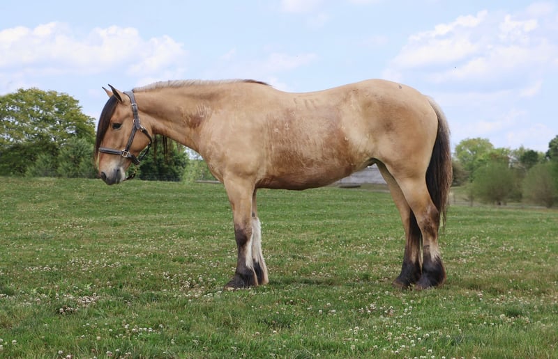 🍂 𝓐𝓾𝓽𝓾𝓶𝓷 𝑨𝑳𝑳 𝑺𝑻𝑨𝑹 𝑳𝑰𝑵𝑬𝑼𝑷 🍂 Happening now thru MONDAY | OCTOBER 6th - Available EXCLUSIVELY on HorseBid's website! For more details and to register visit: www.Horsebid.com CONSIGNOR CONTACT: Philip Bontrager's Horsemanship 989 387 7441 LOCATION: Howell MI BREED: Gypsy Vanner /Fjord REGISTERED: Yes REGISTERED NAME: ML Farms Freyja COLOR: Dunn HEIGHT: 14.3 AGE: 4 GENDER: Mare I am excited to introduce you to ML FARMS FREYJA, she's known as Freyja around the farm. As the old myth goes her name means the goddess of love and beauty. She lives up to her name with her beautiful deep dunn coloring, her extremely thick two tone mane and tail, her silky black feathers and her adorable muzzle that looks like she's dipped her nose in a glass of milk. Freyja is an extremely rare registered Gypsy Vanner (Fdtn Ldr TROOPER), Fjord cross (Sgf Kelley) She is 4 years old and stands a sturdy 14.3hh. This cross did not disappoint. From the beautiful feathering, mane and tail that Gypsys are known for to the dunn coloring, two toned mane and gentle demeanor fjords are famous for she truly has the best of both breeds. Freyja is well broke to ride. She will walk, trot and canter with ease. She knows both leads and has excellent transitions both upward and down. Freyja loves the trails and will go any direction you point her in. She's been thru our full desensitization program and has passed every test from flags to pool noodles, tarps and bridges with elegance and ease. Sitting on Freyja is about as comfortable as sitting on your favorite recliner. All of her gaits are smooth, steady and rhythmical. She's a delight to ride. On the ground she's extremely inquisitive. She is easy to catch in any size field and stands tied anywhere for anything. She has had 30 days in harness as well. In the arena she knows all lateral movements and has even been started over fences. She jumps in stellar form and will excel as a hunter. Freyja is a mare not only as pretty as a picture out of a book but has a mind to match. Please enjoy her video and take note of the various riders and places she's ridden in. Not only is she a delightful mare to ride she's a very rare cross that would produce some amazing babies!