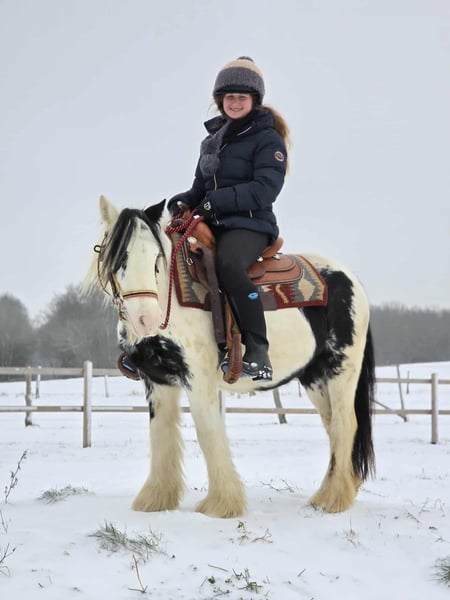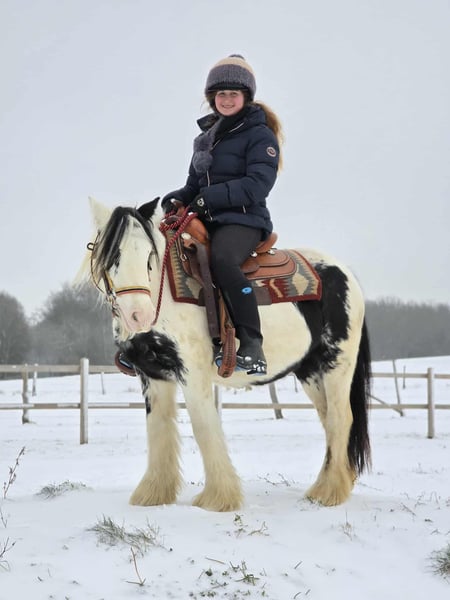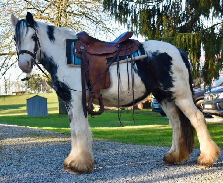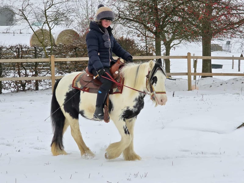 Tinker Stute – brav, gelassen & vielseitig einsetzbar, auch für Therapie geeignet Alter: 5 Jahre Stockmaß: ca. 1,35 m Preis: 4900,- AKU: vorhanden ✨ Beschreibung: Diese charmante Tinker Stute ist ein richtig nettes Pony, das nahezu jeden Spaß mitmacht. Sie überzeugt durch ihr freundliches, ausgeglichenes Wesen und zeigt sich im täglichen Umgang brav, unkompliziert und menschenbezogen. Unter dem Sattel ist sie nett geritten, kooperativ und angenehm zu reiten. Ob auf dem Platz oder im Gelände – sie zeigt sich gelassen und macht ihrem Reiter einfach Freude. Durch ihre ruhige, geduldige Art ist sie sehr zuverlässig und lässt sich auch in neuen Situationen nicht aus der Ruhe bringen. Perfekt für: Kinder, Jugendliche oder kleinere Erwachsene, die ein liebes, verlässliches und vielseitiges Pony suchen. Ideal für Freizeit, Ausritte, Bodenarbeit und alles, was gemeinsam Spaß macht. Aufgrund ihres ausgeglichenen Charakters und ihrer großen Gelassenheit ist sie auch interessant für den Einsatz im therapeutischen Reiten, da sie wirklich brav ist und vieles geduldig mitmacht. Unsere Pferde werden regelmäßig: – entwurmt – vom Schmied betreut – osteopathisch kontrolliert Transport auf Wunsch günstig organisierbar Anfragen bitte ausschließlich telefonisch: 0171 – 4001968 Erreichbar täglich von 8–20 Uhr ⚠️ Keine E-Mail oder WhatsApp ⚠️ Alle Angaben ohne Gewähr
