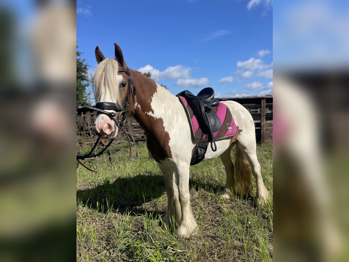 For sale is this beautiful 5-year-old Irish Cob mare with a height of approximately 142 cm. Girl is a picture-perfect Indian mouse, who couldn't be more loyal and charming! She is fine to ride and very relaxed on the way! She has the patience of an angel and nerves of steel! This mare was primarily driven by her previous owners and proved to be bomb-proof even in traffic! She knows how to overcome obstacles and loves trail rides - she has also tackled some cross-country courses and shows great joy in jumping! You can always rely on Girl! During trail rides, she is very calm and fearless! She has a pleasant and steady pace and can be handled by any child! Super cuddly and people-oriented. The absolute dream pony for re-entrants, children/ juniors, riding schools, but also suitable as a therapy pony! She is familiar with riding in groups and has no problem with it - she can go in front, in the middle, or at the back.