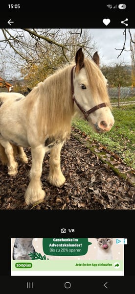 Aufgrund Hallo, Auf Grund einer akuten Verdachts- Diagnose von Bounty‘s Mitbewohnerin habe ich die Entscheidung getroffen die Pferdehaltung aufzugeben. Ihre neuen Menschen sollten ausreichend Erfahrung im Umgang mit Pferden mitbringen da Bounty an den Hinterhufen Mauke hat. Diese beeinträchtigen sie aber im Alltag und beim ausreiten nicht. Sie wird im Moment tierärztlich versorgt somit hoffentlich bald Besserung eintritt. Wer ihr Zeit und das gewisse Pferde know how geben kann dem wird Bounty sicherlich schöne Ausritte mit ihrer ausgeglichen Art zurück geben. Tinker geboren 2016 Zwei blaue Augen Stockmaß ca. 130 Bounty Ist ein liebes Pony das sehr gerne ins Wasser geht und es liebt geputzt zu werden. Sie ist verladefromm. Sie wurde von meiner Tochter Freizeitmässig geritten….und geht alleine ins Gelände. Alle Fragen und wichtigen Infos sehr gerne bei einem persönlichen Gespräch….