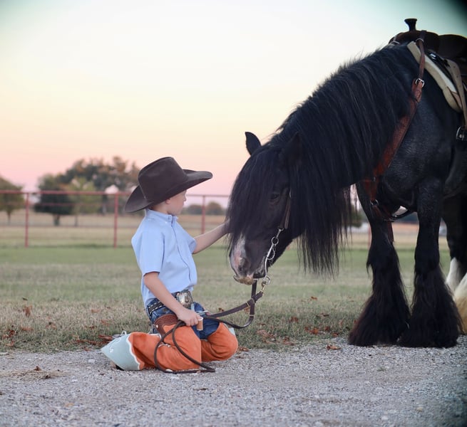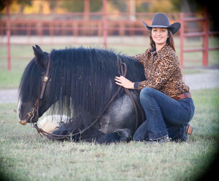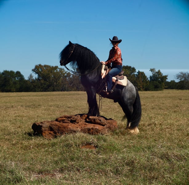 🎲𝓽𝓱𝓮 𝐑𝐈𝐃𝐄𝐑'𝐒 𝓒𝓱𝓸𝓲𝓬𝓮🎲 Happening now thru MONDAY | NOVEMBER 17th - Available EXCLUSIVELY on HorseBid's website! For more details and to register visit: www.Horsebid.com CONSIGNOR CONTACT: BLC RANCH 972-249-5425 LOCATION: Grand saline Tx BREED: Gypsy REGISTERED: Yes REGISTERED NAME: Topaz COLOR: Blue roan HEIGHT: 14.3 AGE: 6 GENDER: Stallion Meet Topaz Topaz is an exceptional Stallion that impresses and turns heads everywhere he goes. Registered GVHS (Gypsy Vanner Horse Society) AND IGEA (International Gypsy Equine Asso) Standing … with his beautiful blue roan color and matching white socks you won’t find another like him. His demeanor and personality makes him a favorite for everyone. Topaz was raised and trained by the Amish. Where he was trained in all different disciplines and drove to church every Sunday. Topaz has been there and done it all. Not only is he trained to lay down and sit on command like a dog he has had extensive saddle and driving training making him as versatile as they come. I guarantee you, you will not ride a smoother gypsy. His gate is impeccable making his ride as smooth as a rocking chair with his one foot cue right into a lope ending with a whoa stop. Topaz knows both of his leads , responds to leg cues , pivots both directions like a quarter horse and has a great stop. When we say he has been there and done it all we mean it. From carrying an extremely large flag in parades , to placing in obstacle course challenges against top quarter horses , to driving to town , going through water, carrying our children and more he has done it all and with ease. While he may not be for everyone. He has been hauled , stalled next to and ridden with mares and is always on his best behavior. He is handled by women and children daily, he is a very well mannered stallion where most would not even know he is a stud. The possibilities with Topaz are endless. Make him your number one ride and Breeder Stallion. Just like his name Northern Lights Topaz Gemstone he truly is a gem that will be a great addition for anyone. Sound and Sane - Negative for PSSM1/FIS Current on farrier , deworming , coggins and will come with health cert.