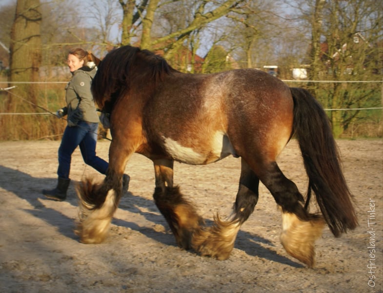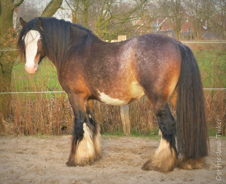 Unser Hengst *Ostfriesland's Chocolate Chips* steht ab Mai wieder einigen gesunden Stuten zur Verfügung. Er ist eingetragen und gekört ins HB1 der Irish Cob Society Nederland, und besitzt 3 Generationen gute Abstammung. Seine Nachkommen sind bereits hoch prämiert. Chips ist typvoll gebaut, hat ein fleißiges Wesen und ist für einen Hengst sehr unkompliziert im Umgang. Er ist reinerbig für Schwarz (es fallen keine Füchse) , vererbt sein schönes Wildbraun und zu 50% ein Tigergen. Mit gescheckten Stuten hat er schon wunderschöne Pintaloosa-Fohlen gebracht, aber auch Einfarbige sind möglich. Mit seinen 1,48m passt er zu Ponystuten, als auch Kleinpferden. Seiner Nachzucht gibt er etwas mehr an Größe mit. Ebenso ist er Pssm1 frei getestet und hat kein Problem mit Mauke. Bei Fragen rufen Sie mich gern an. Die Fotos zeigen einige seiner Fohlen, seinen Vater Camaro und seine Mutter Princess.