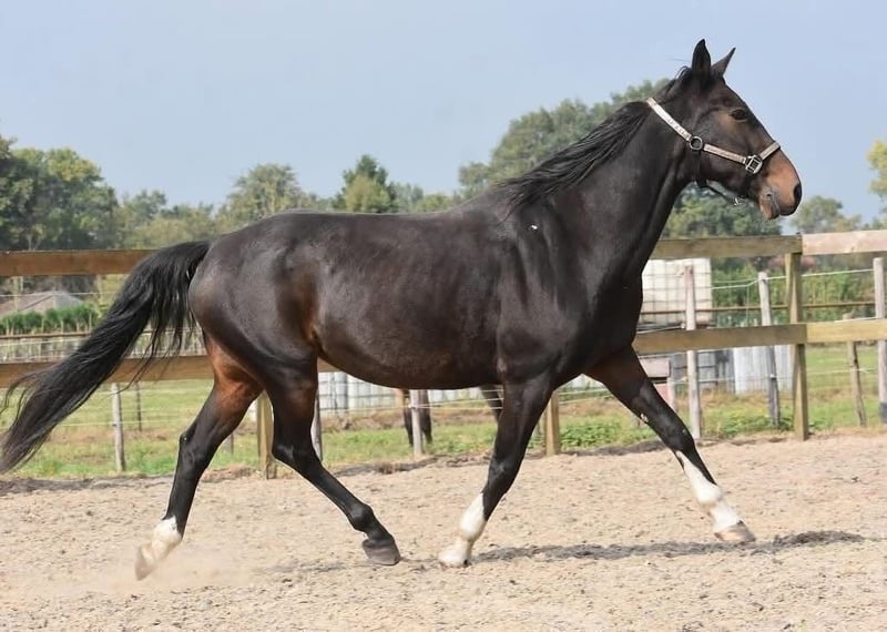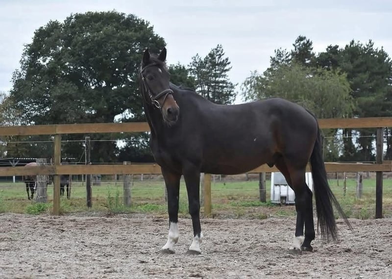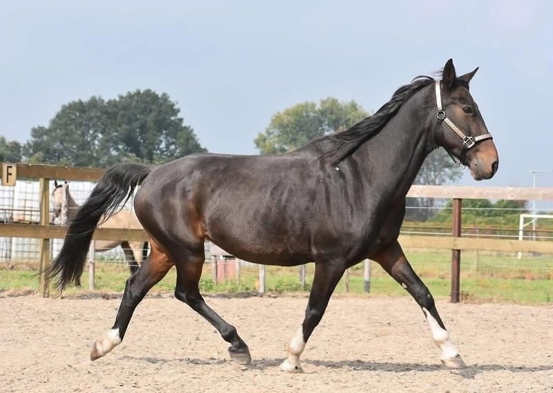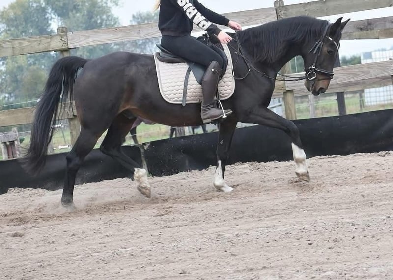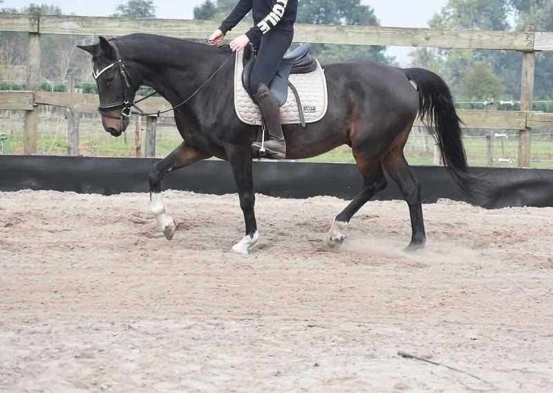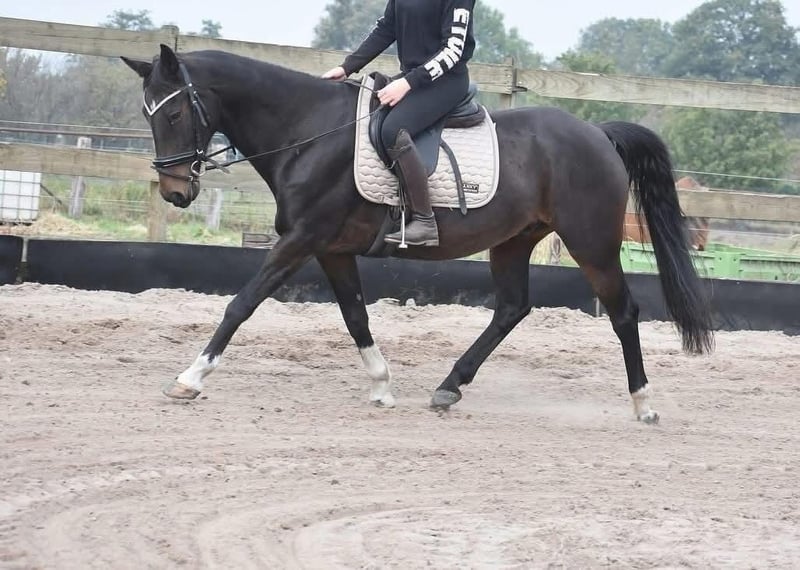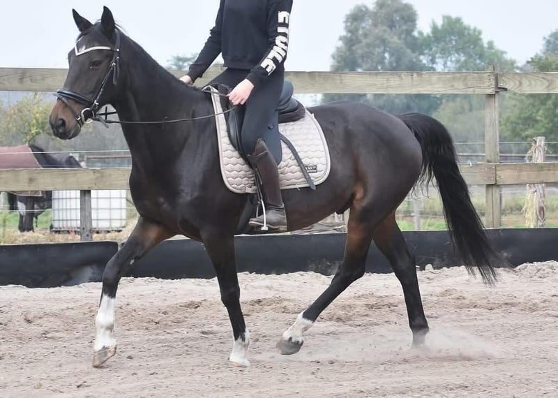 Brave, correct, experienced large E-level dressage horse, ridden and handled Farmer’s Pride Jester is the pride of his breeder; he is a horse with a heart of gold! He stands approximately 1.56 meters tall and was born in 2008. He has already gained riding school experience at a care facility. Jester holds a recent inspection report including blood tests, confirming his suitability for sport! He comes from a full pedigree: Rayo X Perrybridge Touch and Go x Joey. He is suitable for a rider who is not yet very advanced, but he offers the experienced rider more than enough challenge to achieve a lot! Suitable for both sport and recreational riding. Recently treated by the dentist as well. Yester is an incredibly honest horse. The price is very reasonable; he’s not the type that needs to be pushed forward 🙂 He has recently been dental checked, with a current report available. Price € 3,450 now reduced to € 2,450 including branded saddle