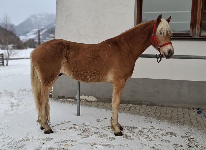 Benetton is a very tall Haflinger with a beautiful coat color, confidently covering the weight of an adult rider. At nearly 2 years old, he currently measures 15.2 hh and has not yet finished growing. I estimate he can reach around 15.3 hh. As a foal, he already participated in the Haflinger Festival (150th anniversary of the Haflinger Land Show in South Tyrol) with his mother, as seen in the first video. Last spring, he was gelded and was able to spend his second summer in the herd on the mountain pasture, where he gained confidence in his steps and robustness (shown in the second and third videos). He is occasionally lunged and is familiar with the horse treadmill. He is used to dogs, cats, and other animals. His mother and father are used in our riding operation and also pull carriages and sleighs. Benetton is very curious and affectionate, and he is not easily spooked for his age, which makes him a promising future leisure partner. He is vaccinated and regularly dewormed. It would be wonderful if he could find a lifelong home where he can be supported and developed.