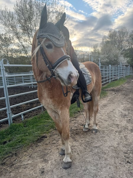 For sale is a young Haflinger gelding, born in April 2022, currently standing at 1.51 meters (approximately 15.0 hh). Amadeus has a quick learning ability and picks up new skills remarkably fast. His training level is approaching A-level. Currently, we are working on lateral movements and leg-yield exercises. Outside the riding arena, Amadeus also proves to be very steady-minded: he is familiar with walks, enjoys water crossings, and remains completely relaxed in traffic. Tractors, dogs, or busy streets do not disturb his composure. He is accustomed to both open stable management and box stalls with daily turnout. He is a barefoot horse, regularly vaccinated and dewormed. Accessories can be purchased additionally. Please contact via WhatsApp if genuinely interested!