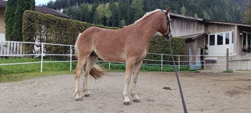 Kody, Haflinger Pinto Mix born in 2022 Very affectionate and eager to please, he is familiar with saddle and bridle. He learns quickly and is now ready for the next chapter in his life. He is accustomed to both stable and pasture life and can easily be turned out with mares. For more information or questions, please feel free to contact us. Location: 6401 / Tyrol