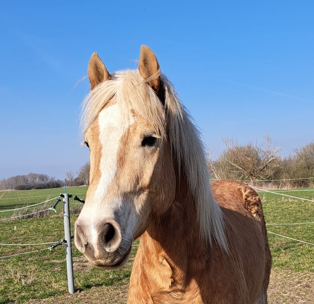Almwind is een jonge Haflinger, net uitgegroeid en daarom nog niet bereden. Hij is eerlijk 150 cm groot en geboren op 25-05-2021. Vader: Armani Moeder: Red Lady Hij is sinds anderhalf jaar bij mij als 'gezelschapspaard' voor mijn senior. Helaas is hij nu alleen, daarom wordt hij alleen in een paardenmaatschappij geplaatst! Almi is een vrolijke kerel, leert ontzettend snel en heeft temperament. Maar hij heeft ook een klein eigenzinnig kantje, anders zou het geen Haflinger zijn... Hij rijdt perfect met de trailer, zowel in een duo als alleen, en is erg mensgericht, bijna een groot knuffelpaard... Voor meer informatie: 0176-82268317 Graag ook via WhatsApp