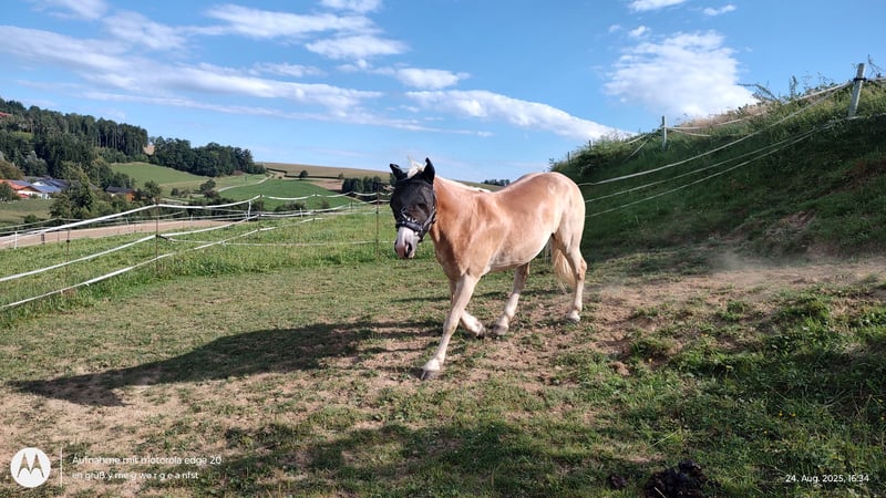 Es handelt sich um ein junges Pferd, dass noch etwas Ausbildung und Formung braucht. Er kann alle Gangarten auch Seitengänge, hat schöne Gänge. Er braucht einen erfahrenen Reiter, der Ihn fördert und formt, hat aber grundsätzlich ein gutes und liebevolles Wesen. Er ist gutmütig im Umgang mit anderen Pferden und in der Herde gab es nie Probleme. Er ist kein Pferd für Anfänger und braucht einen erfahrenen Reiter, dem das Arbeiten und die Weiterentwicklung mit einem jungen Pferd Spaß und Freude macht. Stockmaß: 150 cm Ist frisch beschlagen Im Oktober / April geimpft und entwurmt Ist topfit und gesund Mit Pferdepass und Papieren Zubehör: Dressursattel und Zaum kann mit erworben werden Standort: 4101 Feldkirchen an der Donau, OÖ Preis auf Anfrage Wird nur an einen optimalen Platz abgegeben Bei Interesse gerne melden +43 699 / 81 98 33 92