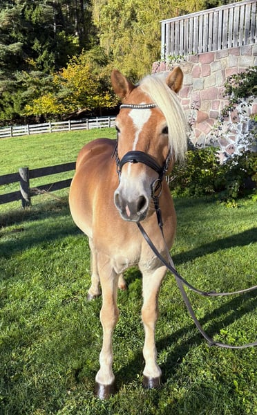 Zeer knappe Haflinger ruin, geboren in 2018 Ingeschreven in het stamboek van de Haflingerras, tijdens de algemene keuring van de hengsten in Italië 2021 in Neumarkt Individuele beoordelingen: Type en elegantie: GOED Vormharmonie: GOED Leden en houding: GOED Stap: ZEER GOED Draf: ZEER GOED Eindscore: IB – ZEER GOED Hij kwam als reservekampioen uit de hengstenkeuring Hengstenstationstest in Warendorf (D) in 2022 voltooid Goede karaktereigenschappen Zachtaardig in omgang Vast in de wei en aan de wagen Opgeleid in dressuur en springen Springen 100-110 cm Dressuurniveau E/A Ook opgeleid in mennen – enkel- en dubbelspan, E/A-niveau Geen beginnerspaard, omdat hij soms graag test, maar wordt continu getraind, is braaf en gemotiveerd Ideaal paard voor recreatie en sport