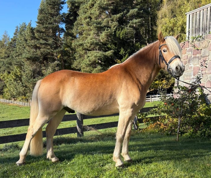 Hermoso caballo gelding de Haflinger Nacido en 2018 Inscrito en el studbook de la raza Haflinger, en la selección de sementales de Italia 2021 en Neumarkt Calificaciones individuales: Tipo y nobleza: BUENO Armonía de las formas: BUENO Miembros y conformación: BUENO Paso: MUY BUENO Trote: MUY BUENO Calificación final: IB – MUY BUENO Fue seleccionado como reserva de vencedores en la selección de sementales. Realizó la prueba de selección en Warendorf (Alemania) en 2022. Buen carácter Bien domado y manejable Apto para la herradura y carga en transporte Entrenado en doma y salto, nivel E/A Salto: 100-110 cm Doma: nivel E/A Entrenado en conducción, en tándem simple y doble, nivel E/A No es un caballo para principiantes, ya que a veces prueba, pero se trabaja con él de forma constante, es tranquilo y motivado. Caballo ideal para ocio y deporte.