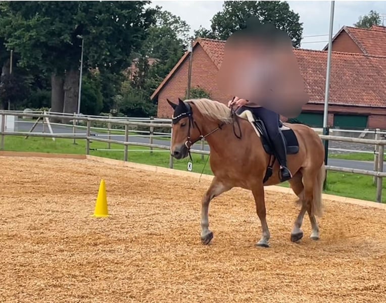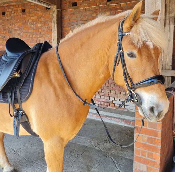 Wonderful Haflinger gelding (purebred, directly from South Tyrol) is looking for the best home in the world – one that offers full attention, enough time, and passion. - He was born on May 3, 2016, - stands at 1.56 m (approximately 15.2 hh) and accommodates taller riders well, - loves groundwork and free work, - eagerly masters pole work and desensitization training, - is familiar with working in double lunge and long reins, as well as ground driving, - is trained in CLASSICAL dressage with a focus on gymnastic development (horse-friendly, without excessive driving or harsh hands!), - can also be ridden bitless, using a neck ring and pad, - responds relatively sensitively to voice and weight aids, - is lunged in correct position and bend with a cavesson, - goes out alone into the countryside, provided you give him the necessary confidence, - is equally enthusiastic about equikinetic exercises, dual activation, and trail tasks. In short: A well-mannered, totally reliable, and uncomplicated leisure companion who loves to be engaged and entertained! He is simply a fantastic all-rounder who participates bravely and curiously in everything. Not a typical "bully" like you might find in poor riding schools! However, you should know what you are doing and act with the necessary fair consistency, or if you are a beginner or returning rider, at least be accompanied by good riding instruction to grow together. Of course, he is regularly vaccinated (influenza + tetanus), dewormed, treated by the dentist (annually), and sees an osteopath and physiotherapist at least twice a year (also as a precaution). His hooves are trimmed every 5-6 weeks, and his saddle and other equipment are checked annually by a saddler. X-rays of his hooves and spine are available – all clear! Nutritional advice for optimal mineral intake based on hay analysis and blood work is taken annually and adjusted accordingly. I wish for someone who can dedicate the necessary time and attention to him. I personally strive to keep him entertained daily (though riding shouldn't be the only focus), but I can no longer manage this long-term and simply cannot find suitable riding partners for support! I would only consider parting with him if I feel I have found a truly wonderful person and the right home. He needs plenty of turnout and absolutely requires social contact in a herd (he can also easily stand with mares in a mixed group), as he is very sociable! This should go without saying! Due to his breed, he tends to gain weight, so portion-controlled roughage feeding is ideal (no haylage!). With me, he has free access to the hay feeder during the day (with additional pasture in summer) and at night, he gets his hay net in his "apartment." This has helped him maintain his weight for over a year. If you have any questions or are interested, please feel free to reach out. He can, of course, be visited and met. A trial ride is also possible, as he is still being worked with. He was gently prepared for everything at the age of five and is therefore not "overcooked." Due to his gentle nature, he is not suitable for competition participation! Off-site clinics, courses, and outings pose no problem. He would certainly enjoy disciplines such as Western Pleasure, Trail, or Working Equitation.