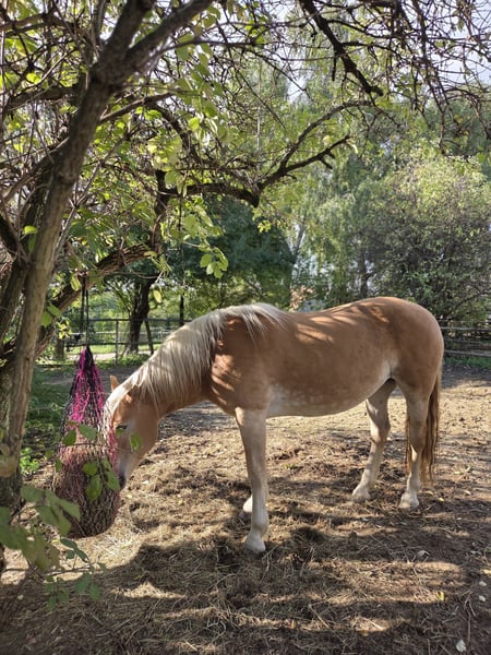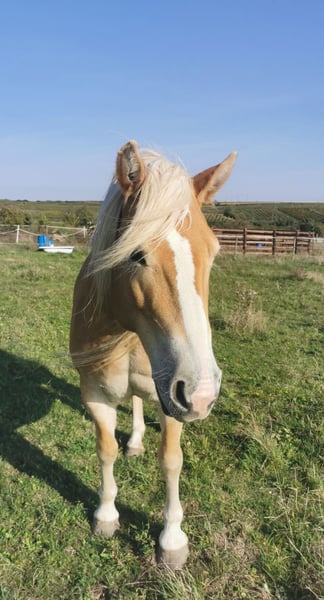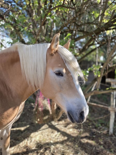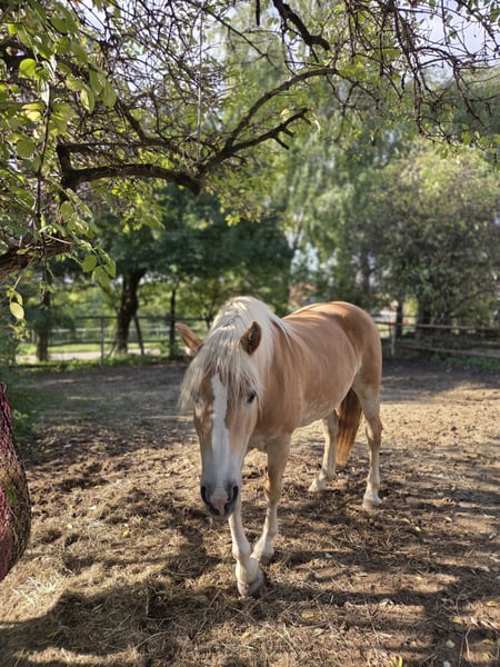 Hanna is looking for a lifelong home with her special person. The interested Haflinger mare has been started under the principles of Parelli and has also been worked from the ground. She is very sensitive during ground work, so it is important for the future owner to be consistent but also very empathetic. Hanna has been living for many years in a small open stable group with 24/7 hay feeding from a hay rack with a net. Unfortunately, due to a lack of sufficient movement and exercise in recent years, she has gained some weight, which is why plenty of movement and a regulated diet will be extremely important in the future. Continuing to keep her in an open stable would be desirable, but she is also familiar with being in a paddock during the day and in a box at night. Unfortunately, as she has not been worked with regularly for years, she is out of practice both under saddle and in other training, and she lacks routine as well as physical fitness. Therefore, she can be quite spooky in the field, making her definitely NOT a beginner horse, but she is very eager and can still be well controlled in anxious situations. Ideally, someone who is motivated to solidify her current training level and further educate her would be perfect. Due to a lack of time, we unfortunately cannot do justice to her. We would be happy to find her a wonderful place with a person who can build a consistent connection with her and finally give her the time, dedication, and attention she deserves.