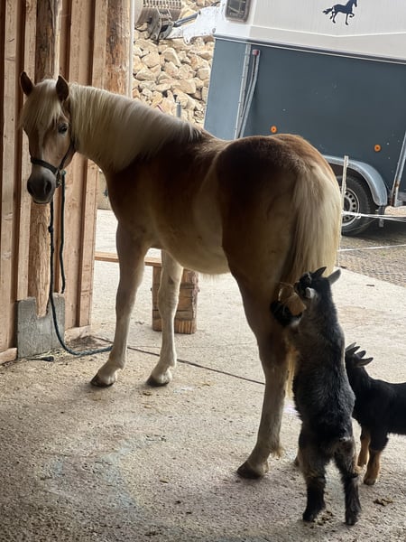 Wir verkaufen diese ausdrucksstarke Jährlingsstute ausschließlich an einen liebevollen Bestplatz. Lillyfee ist eine sehr großrahmige, schön aufgerichtete Jungstute mit einem besonders angenehmen und ausgeglichenen Charakter. Sie ist bereits schmiede- und verladefromm und kennt es, als Handpferd bei Ausritten mitzugehen. Im täglichen Umgang zeigt sie sich ruhig, unerschrocken und äußerst brav – sie kann problemlos auch von Kindern geputzt werden. Lillyfee ist zudem sehr feinfühlig in der Bodenarbeit und reagiert sensibel auf Hilfen. Sie kennt bereits die Arbeit an der Longe sowie die entsprechenden Stimmkommandos und ist stets bemüht, alles richtig zu machen und ihrem Menschen zu gefallen. Sie ist gesund und wird auch dieses Jahr wieder gealpt, was ihre Trittsicherheit und ihre natürliche Entwicklung weiterhin fördert. Abstammung: Ihr Vater ist der Hengst Walencio-B, ein Sohn von Winterstern, der über die Landesgrenzen hinaus für seinen besonders freundlichen und ausgeglichenen Charakter bekannt ist. Auch ihre Mutter überzeugt durch ihre feine Rittigkeit und konnte bei Ausstellungen zahlreiche Erfolge und Platzierungen erzielen. Lillyfee vereint somit beste Voraussetzungen in Bezug auf Charakter, Exterieur und Abstammung und verspricht eine vielversprechende Zukunft als treue Partnerin.