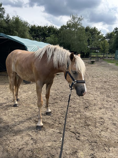 Biete meine 3 Jährige Haflinger Stute an aufgrund privater Umstände. Bella ist ein unglaublich cooles Pferd und besticht jetzt schon durch ihre Gelassenheit und Arbeitsmotivation. Sie ist vom Boden top vorbereitet und kann nun angeritten werden, sie kennt Reitergewicht. Sie ist anlongiert und macht dies hervorragend, reagiert auf Körpersprache und Stimme. Seitengänge, Vorhand & Hinterhandwendung sind kein Fremdwort. Einparken kann sie ebenfalls. Sie ist unerschrocken und kennt hier das Leben auf einem Firmen gelände, LKW, Stapler und Trecker sind ihr geläufig. Spaziergänge sind ebenfalls möglich. Sie wird bereits gebisslos an der Hand gearbeitet und macht dies extrem gut. Sie ist verladefromm, geht regelmäßig zum Schmied und ist geimpft. Steht hier im Offenstall, dies sollte auch so bleiben. Bella hat im Sommer einen Juckreiz an der Mähne, dies wurde untersucht und es konnte kein Auslöser fest gestellt werden. Allergietest war nicht aussage kräftig. Bei mir trägt sie im Sommer eine Fliegendecke und ist damit Happy - seither keiner Probleme mehr. Sie hat keinen Juckreiz am Schweif oder an anderen sonst typischen Ekzem stellen. Bella geht nur in ein 5 Sterne Zuhause, sie wird nicht an Händler oder Schulbetriebe verkauft. Zudem ist sie kein Notverkauf. Ein zur Verfügung stellen wäre auch denkbar. Sie wird in den nächsten Wochen angeritten und somit wird der Preis nicht weiter fallen.